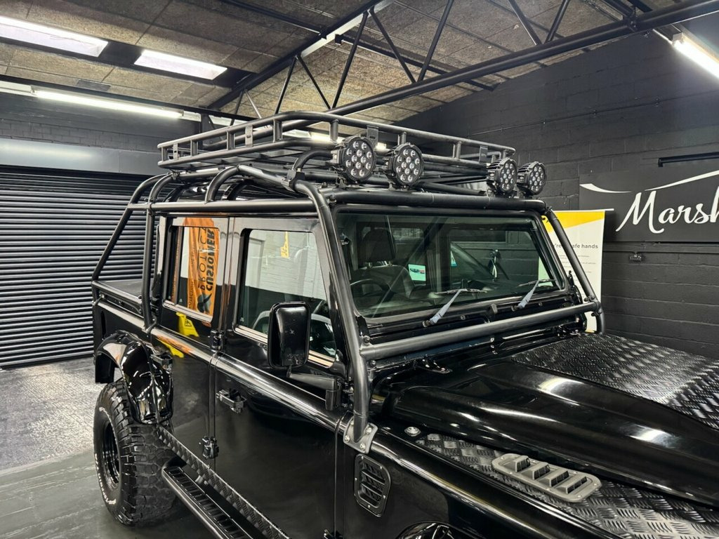 A DISTINCTIVE, SPECTRE-INSPIRED 2009 LAND ROVER DEFENDER 110 XS – BUILT FOR WORK, ADVENTURE & PRESENCE Presenting a uniquely specified 2009 Land Rover Defender 110 Factory XS 2.4 TDCi Double Cab Pick-Up, showing just 84,000 miles, supported by 7 documented services. This is a rare opportunity to own a Defender that blends rugged capability with refined styling—ideal for the working countryside, yet equally at home making a statement on the road. Finished with subtle touches inspired by the James Bond Spectre editions, this Defender delivers commanding road presence without compromising practicality or authenticity. Key Features & Enhancements Factory XS Model – higher-grade trim with upgraded comfort and equipment 2.4 TDCi Engine – renowned for reliability, strong torque, and towing capability Double Cab Pick-Up Configuration – perfect for farming, dogs, tools, or country living Half-Leather XS Seats – durable, comfortable, and easy to clean Lift Kit Fitted – improved stance and enhanced off-road geometry Full External Roll Cage – Spectre-style protection and style Heavy-Duty Off-Road Wheels & Tyres – ready for fields, tracks, and winter conditions Roof Rack – ideal for farm kit, camping gear, or work equipment High-Mounted LED Spotlights – exceptional visibility on rural lanes or work sites Terrafirma Front Winch – essential for recovery, farm use, and off-road confidence