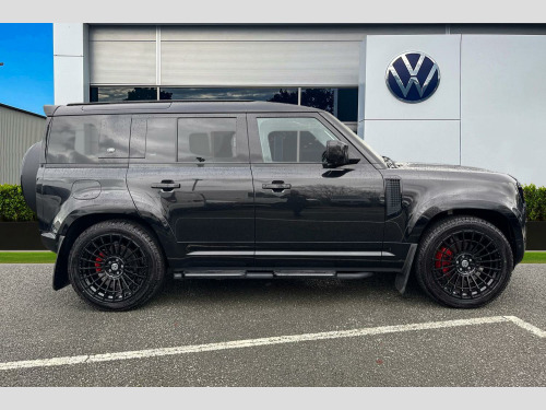 Take a look at this stunning Land Rover Defender 110 that is available to purchase at Wrexham Volkswagen. This Defender is powered by a 2.0L diesel engine that produces 250PS with automatic transmission and all wheel drive. The exterior is finished in a black paintwork, which is complimented by the 22in Urban WX-3 alloy wheels to the side. This Defender comes with a range of features on offer such as the Matrix LED headlights that keep the roads well lit in low light conditions, rear tinted windows for passenger privacy, keyless entry and starting for quick accessibility, and parking sensors that assist with maneuvering alongside the area view cameras.