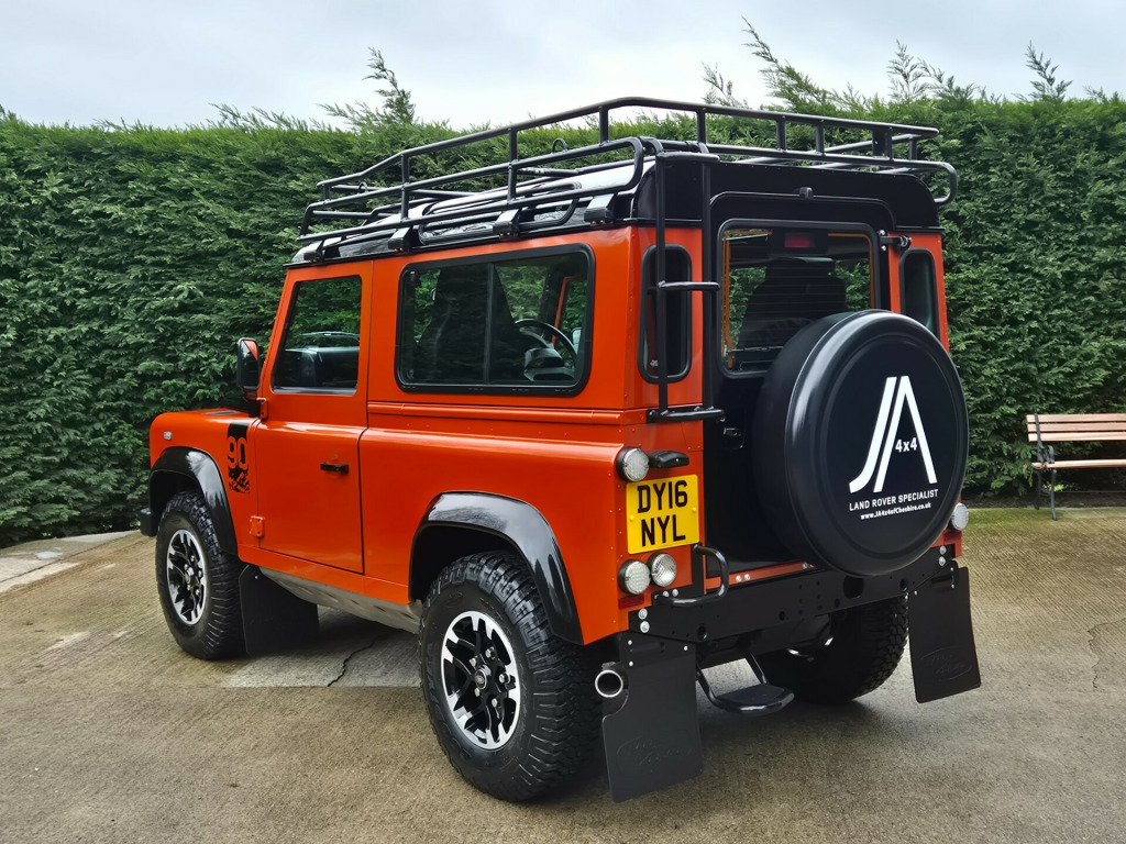 2016/16 LAND ROVER DEFENDER 90 2.2TDCI 150 BHP LIMITED EDITION ADVENTURE STATION WAGON,1 OF ONLY 600 ADVENTURE MODELS BUILT AND REGISTERED,THIS IS ONE OF THE VERY LAST OFF THE PRODUCTION LINE IN 2016 !!!!,GLEAMING METALLIC PHOENIX ORANGE WITH FACTORY METALLIC SANTORININ BLACK PACK,ONLY 6900 GENUINE MILES FROM NEW WITH JUST 1 PREVIOUS OWNER AND A FULL SERVICE HISTORY FROM LAND ROVER MAIN DEALER AND SPECIALIST,FULL LIMITED EDITION ADVENTURE MODEL SPECIFICATION,FULL BLACK LEATHER INTERIOR,PREMIUM LAND ROVER ADVENTURE LEATHER FRONT SEATS,4 SEATS (REAR LOADSPACE HAS 2 FORWARD FACING SEATS),AIR CONDITIONING,HEATED FRONT AND REAR SCREENS,HEATED SEATS,ELECTRIC WINDOWS,CENTRAL LOCKING,ALPINE CD STEREO SYSTEM,BLUETOOTH,LEATHER CLAD DOOR TRIMS,STEERING WHEEL AND GEAR STICK GAITERS,ALUMINIUM INTERIOR DOOR HANDLES,GEAR KNOBS AND TRIMS THROUGHOUT,BLACK ALCANTRA HEADLINING,BLACK PREMIUM LAND ROVER CARPETS THROUGHOUT,12V POWER SOCKETS,PREMIUM CENTRE CUBBY BOX AND CUP HOLDERS,GLOSS BLACK CENTRE DASHBOARD,ADVENTURE OVER-CARPETS THROUGHOUT,2 KEYS/REMOTES,ABS/TRACTION CONTROL/HIGH,LOW RANGE AND CENTRE DIFF LOCK,16'' LIMITED EDITION ADVENTURE DUAL FINISH ALLOY WHEELS WITH GOODYEAR WRANGLER MTR ALL-TERRAIN TYRES,ADVENTURE MUDFLAPS FRONT AND REAR,REAR STEP,ADVENTURE SPEC ROOF RACK AND REAR LADDER,LAND ROVER ALUMINIUM UNDER-BODY SIDE PROTECTION GUARDS AND FRONT DIFF/STEERING GUARD,LAND ROVER RAISED AIR INTAKE/SNORKEL,LAND ROVER FACTORY LED LIGHTS THROUGHOUT,THIS IS YOUR OPPURTUNITY TO PURCHASE ONE OF THE VERY LAST TRUE DEFENDERS BUILT AND REGISTERED BY LAND ROVER AND ONE OF ONLY 600 ADVENTURE MODELS BUILT !!!!!,ULTRA LOW GENUINE MILEAGE OF ONLY 6900 MILES!!!!,IMMACULATE AND AS NEW CONDITION THROUGHOUT THIS DEFENDER HAS GLEAMING/UNMARKED BODYWORK,IMMACULATE/AS NEW INTERIOR AND A CHASSIS/UNDERSIDE THAT BENEFITS FROM BEING CORROSION PROTECTED FROM NEW WITH LANOGUARD,YOU DEFINITELY DONT WANT TOO MISS THIS STUNNING ULTRA LOW MILEAGE LIMITED EDITION DEFENDER 90 ADVENTURE STATION WAGON IT HAS BEEN COSSETED FROM NEW AS ITS STUNNING CONDITION SHOWS ITS A TRUE INVESTMENT FOR THE FUTURE FOR SURE,THIS DEFENDER HAS JUST BEEN FULLY SERVICED AND PREPARED BY OURSELVES TO OUR USUAL HIGH STANDARD WITH NEW MOT READY TO DRIVE AWAY,FULLY HPI CLEAR AND MILEAGE CHECKED,ROAD TAX JUST £345 PER YEAR,6 MONTHS EXTENDABLE WARRANTY GIVEN,FINANCE AVAILABLE,FCA REGISTERED,PART EXCHANGE TAKEN,DELIVERY INCLUDED IN THE ASKING PRICE !!!!!,LAND ROVER SPECIALIST 30 YEARS,J A 4X4 OF CHESHIRE LIMITED IS AN INDEPENDENT LAND ROVER SPECIALIST EXCLUSIVELY OFFERING LAND ROVER DEFENDER & RESTORED SERIES LAND ROVERS !!!,MORE PHOTOS AND WALKAROUND VIDEO AVAILABLE ONCE THE WEATHER IMPROVES !!,WE HAVE 2 OF THESE LIMITED EDITION DEFENDER 90 ADVENTURES IN STOCK,THE OTHER IS CORRIS GREY WITH 2500 MILES ONLY MESSAGE FOR MORE DETAILS !!!!