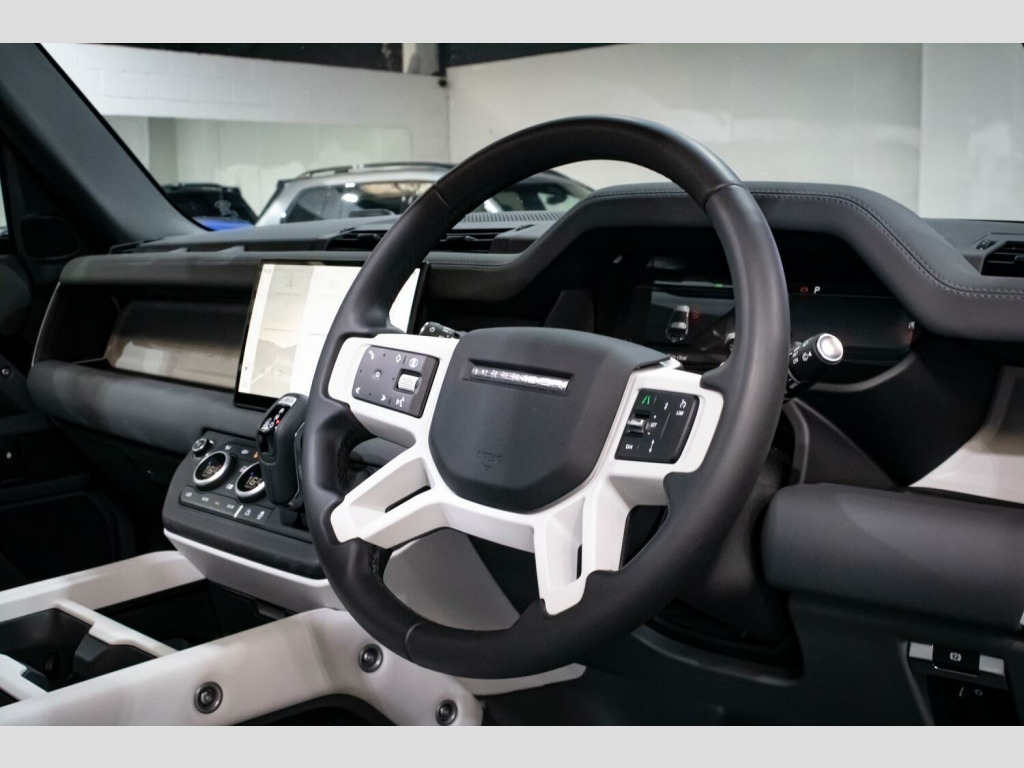 2025/25 Land Rover Defender 90 Finished in Santorini Black! Great Specification to include - Santorini Black Paint with Colour Matched Roof, Light Cloud Interior with Ebony Contrast, Wireless Charging, Power Folding Mirrors, Meridian Sound System, Full Digital Display, Lane Assist, Sliding Panoramic Roof, Apple Carplay, TowBar, 360 Camera, Heated Front Seats Plus loads more!, INDOOR SHOWROOM - HPI CLEAR - 2 KEYS - APPOINTMENT ONLY - PLEASE CALL US ON 01924471251