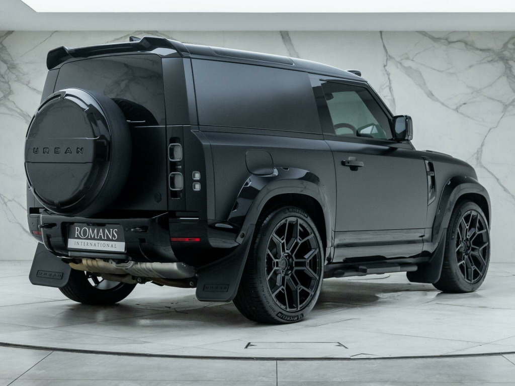 Finished in Santorini Black Metallic Paint with Ebony Leather - VAT Qualifying - Desirable ‘HSE’ Hard Top Example - Featuring the 'Full Urban WideTrack Kit' - Land Rover Manufacturer’s Warranty until December 2027 - Satin Paint Protection Film (PPF) Applied to Santorini Black Body Panels (Except Roof) - UK SuppliedOptional Extras:23-Inch Urban UV-4 Forged Wheels by VossenSantorini Black PaintFull Urban WideTrack Kit (Including: LED Roof Light Pod + Urban Bonnet Vents & Lettering + Extended Wheel Arch Set + Black Shadow Side Steps + Rear Roof Spoiler + Urban Wheel Cover + Urban Mudflaps + Urban Badges)Electronically Deployable Tow BarCold Climate Convenience Pack (Including: Heated Windscreen + Heated Steering Wheel + Heated Washer Jets + Headlight Power Wash)Air Suspension Pack (Including: Electronic Air Suspension + Adaptive Dynamics)Urban Recaro Bucket SeatsBody Coloured RoofSatin Paint Protection Film (PPF) Applied to Santorini Black Body Panels (Except Roof)Standard Features:14-Way Heated & Cooled Electric Memory Front Seats with 4-Way Manual Headrests3D Surround CameraBlind Spot AssistDigital Audio Broadcast (DAB) RadioHeated Steering WheelMeridian Surround Sound SystemSliding Panoramic RoofTwo-Zone Climate Control. 23-Inch Urban UV-4 Forged Wheels by Vossen, Santorini Black Paint, Full Urban WideTrack Kit, Electronically Deployable Tow Bar, Cold Climate Convenience Pack (Including: Heated Windscreen + Heated Steering Wheel + Heated Washer Jets + Headlight Power Wash), Air Suspension Pack (Including: Electronic Air Suspension + Adaptive Dynamics), Urban Recaro Bucket Seats, Body Coloured Roof, Satin Paint Protection Film (PPF) Applied to Santorini Black Body Panels (Except Roof).