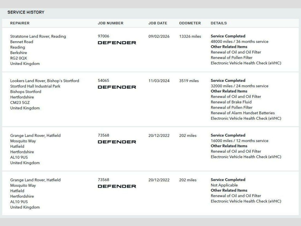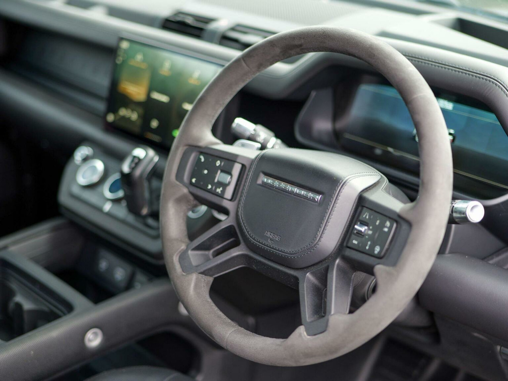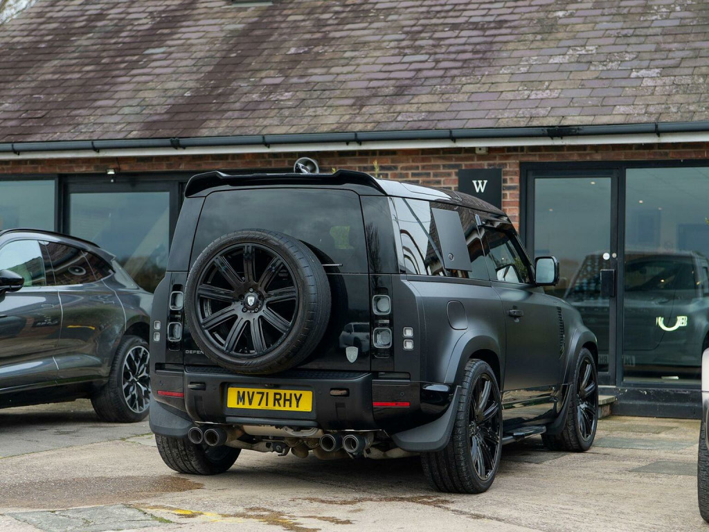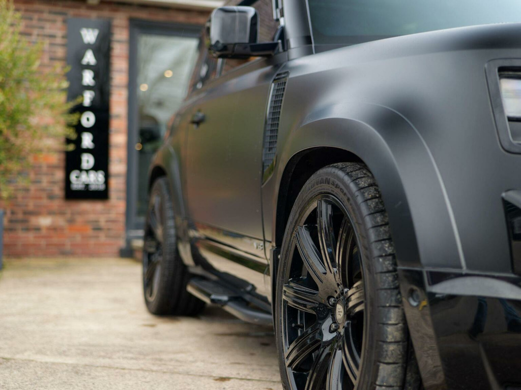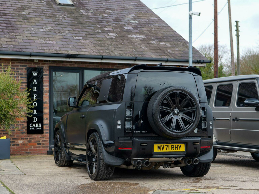 Warford Cars are proud to present this Land Rover Defender 90 V8 Carpathian Edition in Carpathain Grey (wrapped Satin Black) with Black Leather & Alcantara Interior with Alcantara Steering Wheel. The car is optioned with 11.4 Touchscreen, Deployable Tow Bar, Revere 23-Inch WC4 Black Wheels, Revere Front Bumper, Fixed Side Steps, Extended Wheel Arches, QuickSilver Carbon Tipped Quad Exhausts and Boot Lip Spoiler. Key features include Sliding Panoramic Sunroof with Powered Blind, Heated & Cooled Memory Front Seats, Head-Up Display, Wireless Apple CarPlay & Android Auto, Adaptive Cruise Control, Heated Steering Wheel, Meridian Surround System, Wireless Phone Charging, ClearSight Rear View Mirror, Front & Rear Parking Sensors with 360 Cameras, Dual Zone Climate Control, Fridge Centre Console, Keyless Entry & Push Button Start, Power Folding Wing Mirrors with Blind Spot Monitoring and Privacy Glass. The car comes with Full Land Rover Main Dealer Service History having been done 11/03/2024 at 3519 mile and 09/02/2026 at 13,326 miles (pictured). Viewings Strictly by Appointment Only. Competitive Finance Options Available. Extended Warranty Available. Professional GTechniq Accredited Detailing Available. Call directly to arrange a viewing on 07537 165874