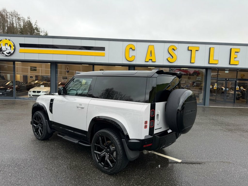 90 Hardtop S D250 Commercial with Wide Track Arches and JUMP SEAT. 2026 new model colour of Borasco Grey Metallic with full Wide Arch Package featuring 22 inch wheels, rear spoiler, Black side steps, Extended Black Exterior Package, roof POD LED lighting, top louvered bonnet and side vents plus lower front spoiler, rear wheel cover, 2026 revised model with factory options including Land Rover Detachable tow package and 2026 model year enhancements including rear lights and larger infotainment screen, radar adaptive cruise control, heated seats, 360 degree surround view cameras+++. Delivery miles finance part exchange and delivery available
