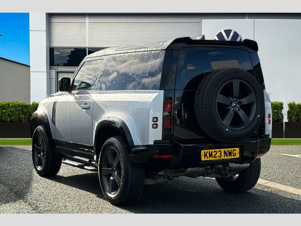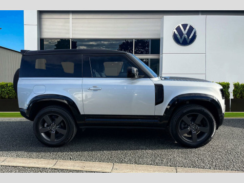 Available to purchase at Wrexham Volkswagen this is stunning Land Rover Defender 90. Powering this Defender is a 3.0L diesel engine that produces 246 BHP with automatic transmission and four wheel drive, and is the perfect multi-terrain vehicle. The exterior, which is finished in a silver paintwork with black styling, has a range of features on offer. To the front of the vehicle you'll find the LED headlights that provide outstanding visibility, and to the side the rear tinted windows for passenger privacy and the 20in alloy wheels. For added convenience this Defender also features keyless entry and starting for quick accessibility, a detachable towbar for your towing needs, and parking sensors that assist with maneuvering alongside the area view cameras.