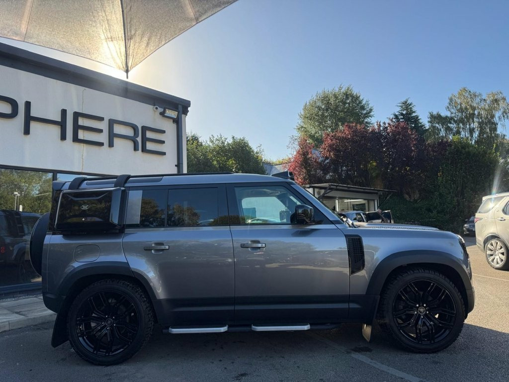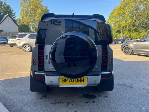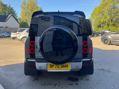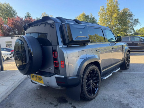 This is a Land Rover Defender 110, registered in 2021, in the HSE trim. As a car with four-wheel drive and a 2.0-litre diesel engine, this SD4 HSE variant boasts very low mileage of only 24391 miles. It comes equipped with 20-inch alloy wheels in a stylish satin dark grey five-spoke design. The interior is enhanced by a Meridian Surround Sound System, ensuring an immersive audio experience. For added convenience, it features an electrically deployable tow bar and keyless entry. The front seats offer 14-way adjustability, with heating, cooling, electric memory, and 4-way manual headrests. This Defender 110 is Euro 6 compliant and has a towing weight of 3500 kg. The acceleration of 0-60mph in 8.7 seconds demonstrates its responsive performance, setting it apart from similar vehicles. 10in Touchscreen, 14-Way Heated and Cooled Electric Memory, 20in Alloy Wheels - Style 5095 - 5 Split, 20in Alloy Wheels - Style 5098 - 5 Spoke, 20in Full Size Spare Wheel, 360 Degree Parking Aid, 3D Surround Camera, 40-20-40 Folding Rear Seats with Centre , ABS - Anti Lock Braking System, ACC - Adaptive Cruise Control, Adaptive Dynamics, Airbags - Driver, Airbags - Front Passenger, All Season Tyres, Android Auto, Apple CarPlay, Automatic Headlight Levelling, Automatic Headlights and Rain Sensing Wi, Black Exterior Pack, Blind Spot Assist, Cabin Lighting, Carpet Mats, Centre Console with Armrest, Clear Exit Monitor, ClearSight Interior Rear View Mirror, Click and Go Integrated Base Unit, Conn