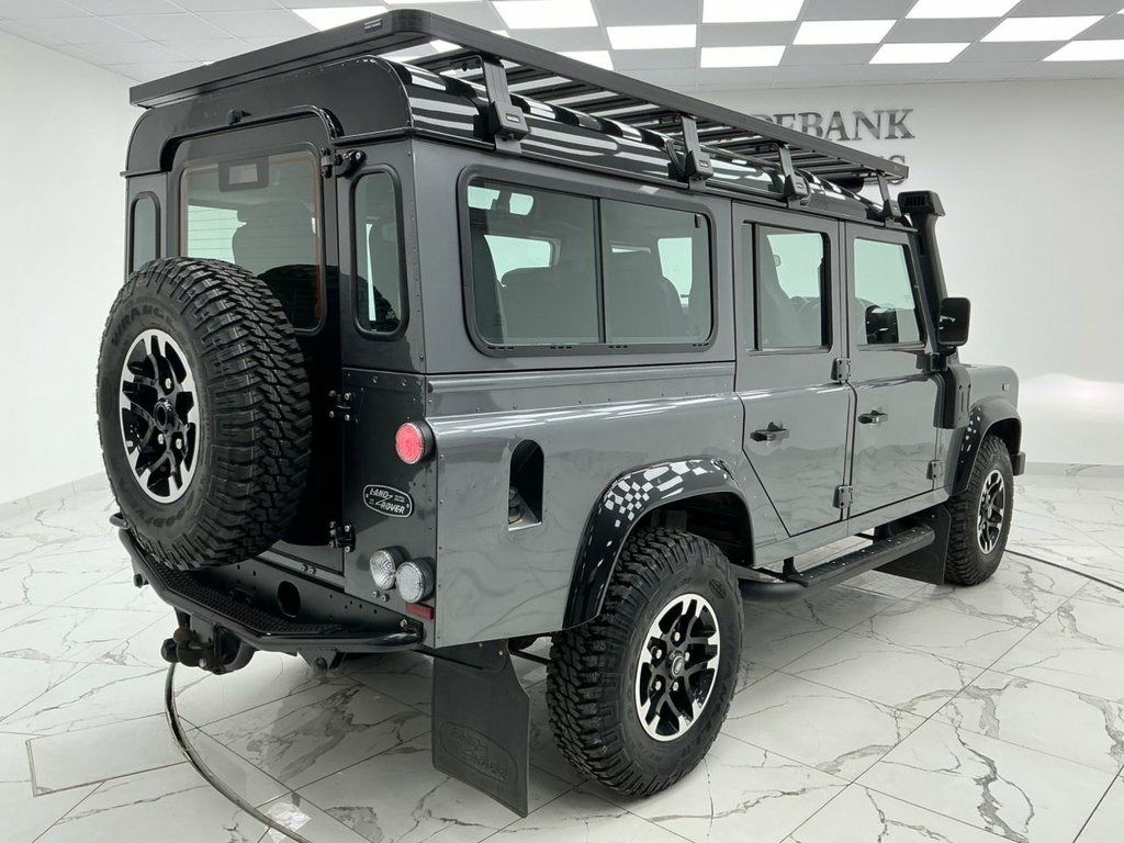This Is 1 Of Only 600 Adventure Defenders Built For World Supply! This 1 Is Finished In Corris Metallic Grey With Black Contrasting Roof, This 110 Is A 7 Seat Version All 7 Seats Finished In Black Leather , The Adventure Has Lots Of Leather Upgrades Such As Door Trims, Handbrake, Gear Stick, Grab Handles, Cubby Box Along With A Full Black Alcantara Headlining, LED Lights Under Body Side Protection, Land Rover Raised Snorkel Air Intake, Upgraded Rover Roof Rack And Side Steps, Snap off Steering Wheel & Security Lock ( Original Parts Also Available) , Rear Ladder, Side Runners. Immaculate Condition Through Out, The Chassis Is In Perfect Condition With No Corrosion. 1 Of Only 600 World Wide And This One Only Has 12,857 miles. Finance & Extended Warranty Available Corris Grey, 16in Alloy Wheels - Forged Diamond Turne, 4 Speakers, ABS - Anti Lock Braking System, Adventure Edition Metal and Rubber Pedal, Air Conditioning, Alarm System - Perimetric and Volumetric, Audio System - CD-Radio-MP3-AUX, Auxiliary Points - Front, Bluetooth Phone Connection, Bright Aluminium Perforated Leather Wrap, Bright Pack, Carpet Mats - Front and Rear, Clear Indicator Lenses, Cold Climate Pack, Convenience Pack, Cubby Box - Hi-line in Vinyl, Cupholders x2, DSC - Dynamic Stability Control, Defender Bonnet Script - Atlas Finish, Door Panels and Front Passenger Facia in, ETC - Electronic Traction Control, Expedition Roof Rack, Front Centre Stowage Compartment, Full Size Spare