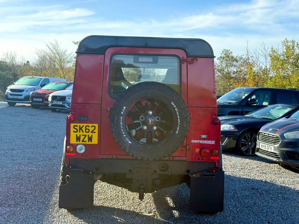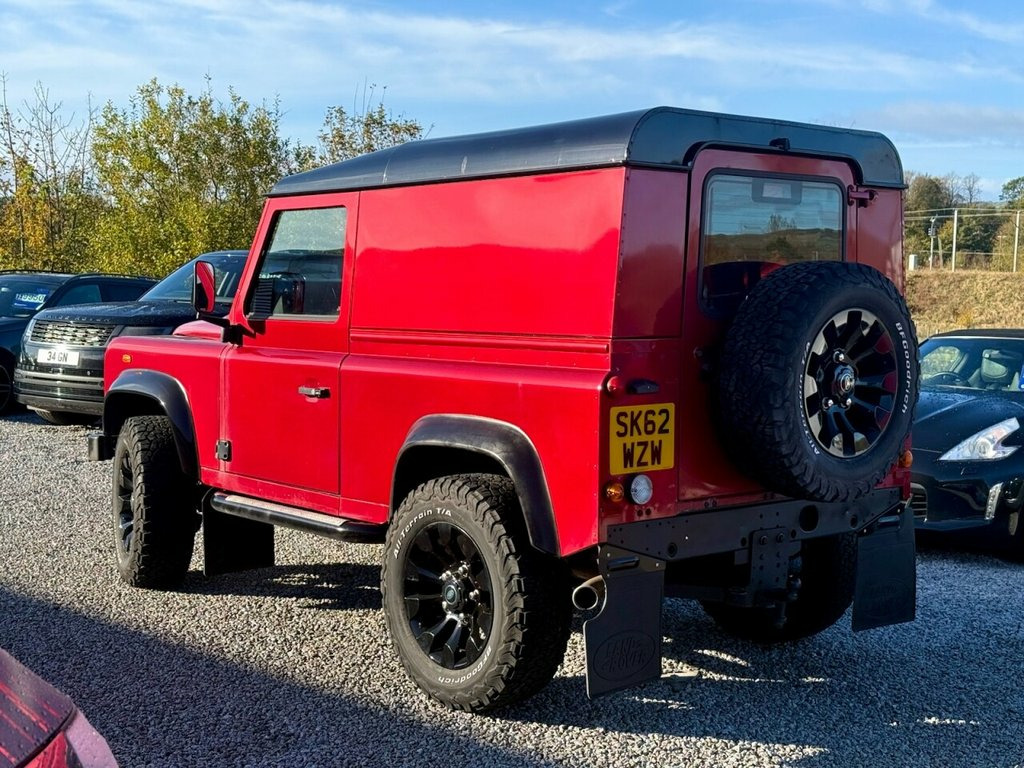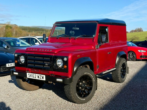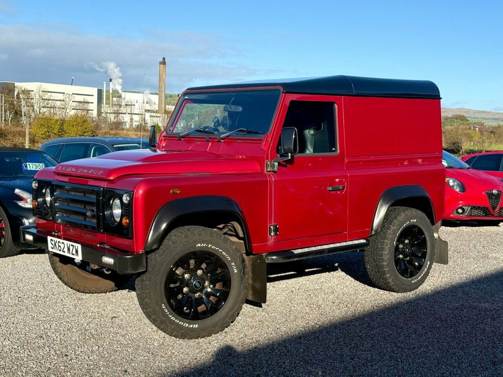 2012 (62 plate) Land Rover Defender 90 2.2 TDCi SUV West Coast Motors are proud to be supplying this new in 2012 (62) Land Rover Defender 90, finished in a rare Firenze Red colour with a leather interior. Like all defenders of this era, it has a manual gearbox with 4X4 differential settings including diff lock. This example has covered 96,352 miles from new, with a recent clean health check carried out from Land Rover Glasgow within the last year, noting everything on the car including the chassis as green. During this a major service had been carried out by Land Rover on the car including all engine, gearbox and differential oils being changed alongside new glow plugs, brake callipers and shock absorbers. The total cost totalling more than ?10,000. All invoices and paperwork provided with the car. The specification of this defender includes upgraded leather bucket seats, 18" genuine Sawtooth alloys with new Goodrich all terrain tyres all round, wheel spacers, MOMA steering wheel, kenwood radio and more. A very well kept car inside and out with minimal wear noted throughout. Credit to its previous 2 owners. 2 keys supplied, 2 previous owners 12 months mot, 3 month warranty as standard ?21950 Get in touch to reserve your new car today! 16in Steel Wheels - Michelin Latitude Cr, Airbags - Full Size Driver, Alarm System - Perimetric and Volumetric, Cupholders x2, Glass - Rear Wash/Wipe, Power Assisted Steering, Radio Preparation - inc. Aerial No Speak, Rear Glazed Doors, Rubber Floor Trim, Seats - 2, Side Panel - Plain Metal No Side Window, Single Passenger Seat, Windows - Tinted Front and Side