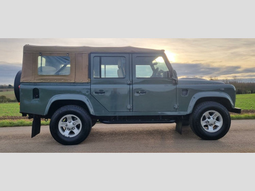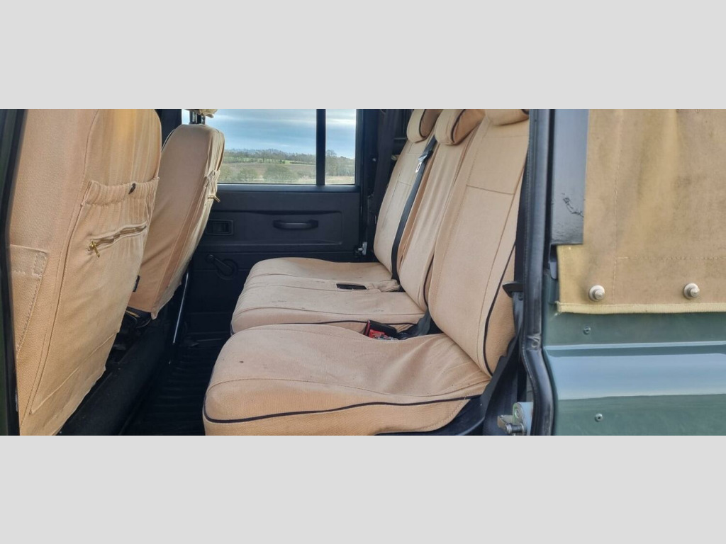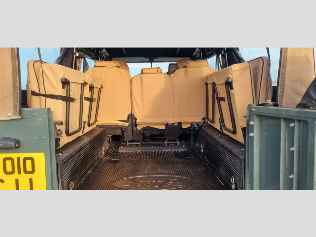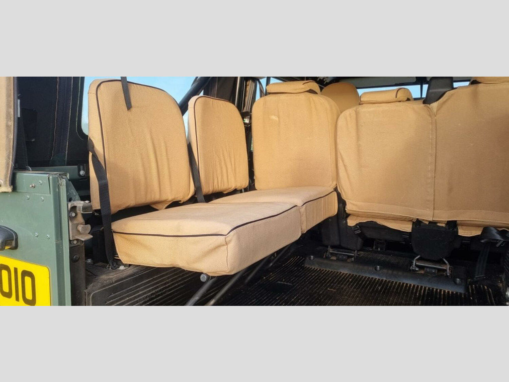 A rather special defender that offers 9 seats and a canvass roof matching the colour of the bespoke seat covers , , This car has only had 2 owners, , The last owner originally acquired the in late 2020 as a standard 110 but in excellent condition, in 2021 the vehicle benefitted from a very significant recomission, upgrades and soft top conversion at a cost of £20,000 by a highly reputable landrover specialist. , Since then then car has done about 3000 miles a year with good servicing history; essentially has been used by a luxury hotel. , The car drives better than most Defenders in our humble oppinion and is totally solid with excellent paintwork. , This is by no means a run-of-the-mill Landrover