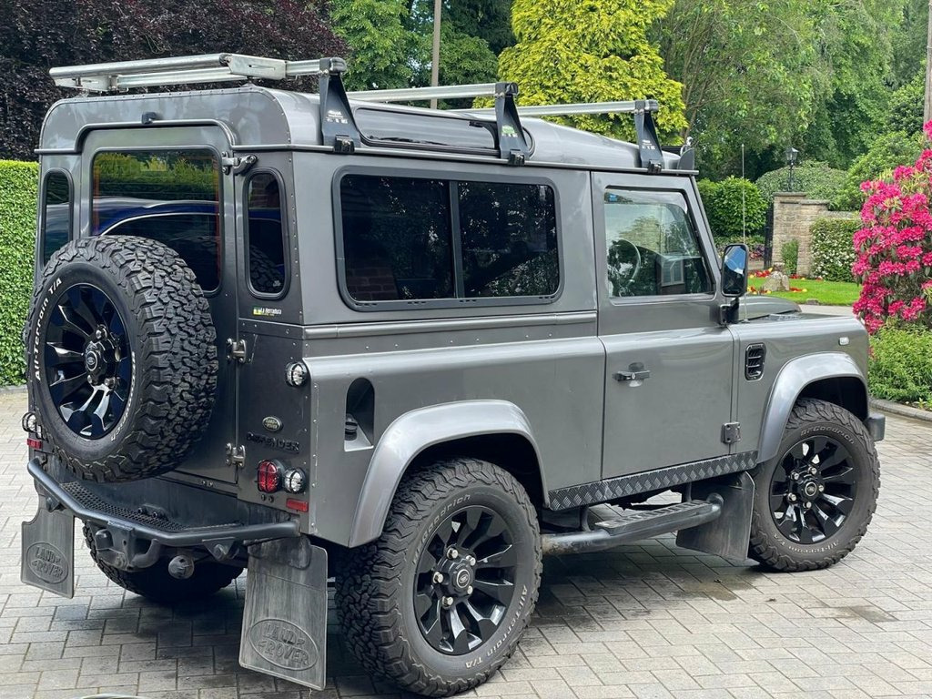 Due In Stock Soon- Defender 90 County Station Wagon. In Excellent Condition, Benefitting from the following works carried out. *Full Chassis Waxoyl treatment. * 18" Sawtooth Alloys with BFG KO 2 tyres. * LED Light Upgrade All Around. * Carpet kit Front And Rear. * Momo Steering Wheel. * DRL Front Bumper. * Steering Guard. More Information And Pictures To Follow. 16in Steel Wheels, Boost Alloys with Continental Tyres, Delete Rear Seats, Folding Rear step, Freestyle boost Alloys with Grabber Tyre, Goodyear MT & R Tyres, Low line cubby box, Michelin XPC 750x16 Tyres