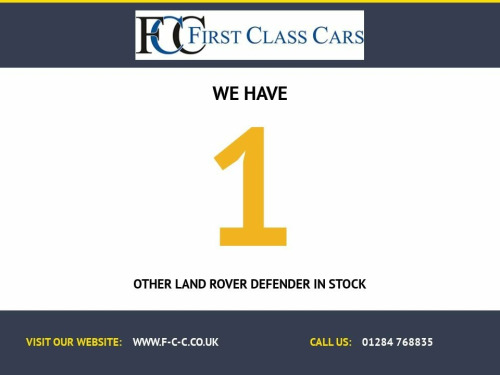 WE had this in stock and bought back in against a new Defender 90. Lots of upgrades inc...Side Steps, 22" Alloys, clear view mirror, 3rd seat, T-bar and cold climate pack. Cracking commercial with NO VAT to pay..Please call for a bespoke finance deal with rates from 8.9% HP/PCP private or 9.9%APR Ltd company finance. We may receive a commission from the lender on intro, ask for more info. Open 6 days a week, closed on Sundays. Tasman Blue, ClearSight Interior Rear View Mirror, Front Jump Seat, Black Exterior Pack, Off-Road Tyres, Electrically Deployable Towbar, Black Contrast Roof, 22in Alloy Wheels - Style 5098 - 5 Spoke, 10in Touchscreen, 12V Socket in Loadspace, 18in Full Size Steel Spare Wheel, 18in Steel Wheels - Style 5093 - Gloss W, 2-Zone Automatic Climate Control, 360 Degree Parking Aid, 3D Surround Camera, 8-Way Heated Semi-Powered Front Seats, ABS - Anti Lock Braking System, Additional Lashing Points, Airbags - Driver, Airbags - Front Passenger, All Season Tyres, Alpine Lights, Analogue Dials with Central TFT Display, Android Auto, Apple CarPlay, Assisted Tailgate with Soft Close, Auto-Dimming Interior