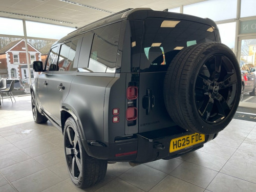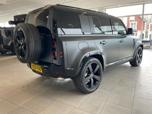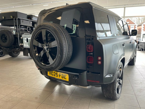 This 2025 Land Rover Defender 110 D250 X Dynamic HSE is a superb example, boasting a clear vehicle history and having had only one owner from new. This four wheel drive model is powered by a robust 3.0 litre diesel engine, meeting Euro 6 emission standards, and offers an impressive towing weight of 3500 kg. Inside, you will find a luxurious Meridian Surround Sound System, a 360 degree parking aid with camera assistance, and convenient 2 zone automatic climate control. Further enhancing your driving experience are the blind spot assist features and wireless device charging. The Defender 110 D250 X Dynamic HSE stands out with its brisk acceleration, reaching 0 to 60 mph in just 7.9 seconds, a performance that demonstrates its capability compared to other vehicles in its class. Its low insurance group rating also signifies excellent value for money. This vehicle combines rugged capability with refined comfort, making it a compelling choice for those seeking a premium and versatile SUV. Cross Car Beam in Dark Grey Powder Coat , Cold Climate Pack, Front Centre Console Refrigerator Compar, Air Suspension Pack, Windsor Leather - Caraway with Caraway-E, Matte Protective Film, Electrically Deployable Towbar, Black Contrast Signature Graphic with In, Extended Black Exterior Pack, 22in Full Size Spare Wheel, 22in Alloy Wheels - Style 5098 - 5 Spoke, 1 x USB-C - Power Only - 1 x USB-C - Pow, 11.4in Touchscreen, 12V Power Sockets in Row 1 and Load Spac, 14-Way Heated and Cooled Electric Memory, 2-Zone Automatic Climate Control, 20in Alloy Wheels - Style 5098 - 5 Spoke, 20in Full Size Spare Wheel, 360 Degree Parking Aid, 3D Surround Camera, 40-20-40 Folding Rear Seats with Centre , A