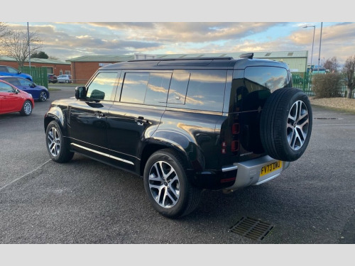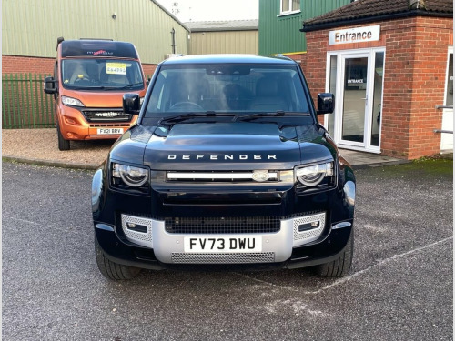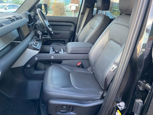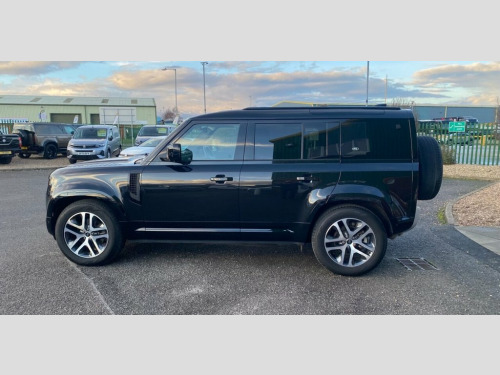 Land Rover Defender 3.0 D250 MHEV XS Edition SUV 5dr Diesel Auto 4WD Euro 6 (s/s) (250 Ps) finished in Santorini Black with 20" 5 split spoke Gloss dark grey alloys with contrast diamond turned finish. This low mileage Defender comes with satellite navigation, interactive driver display, 10" touchscreen, 3D surround camera, 360 degree parking aid, apple car play/android support, DAB radio, Bluetooth, electronic air suspension,12 way heated and cooled electric memory leather seats, 2-zone automatic climate control, meridian sound system, heated electric power mirrors, cruise control/speed limiter, heated front screen, lane keep assist, privacy glass, traffic sign recognition and adaptive speed limiter, blind spot assist, wireless charging, sliding panoramic roof, wireless charging, matrix LED headlights with signature DRL, Balance of manufacturer's warranty. Please note that vehicle specifications , features & designs may vary due to Model Year changes. We strive for accuracy but variations may occur. Please confirm details with our sales team or showroom at time of purchase.. Part exchange, Full finance facilities and Nationwide Delivery can be arranged 1st Service 24/11/2025 at 7686 miles Land Rover 10in Touchscreen, 12-Way Heated and Cooled Electric Memory, 12V Socket in Loadspace, 2-Zone Automatic Climate Control, 20in Alloy Wheels - Style 5095 - 5 Split, 20in Full Size Spare Wheel, 360 Degree Parking Aid, 3D Surround Camera, 40-20-40 Folding Rear Seats with Centre , ABS - Anti Lock Braking System, Adaptive Dynamics, Airbags - Driver, Airbags - Front Passenger, All Season Tyres, Alpine Lights, Android Auto, Apple CarPlay, Automatic Headlight Levelling, Automatic Headlights and Rain Sensing Wi, Black Roof Rails, Blind Spot Assist, Body Coloured Bonnet, Body Coloured Roof, Brake Hold, Brake Pad Wear Indicator, CBC - Cornering Brake Control, Carpet Mats, Centre High Mounted Stop Light, C