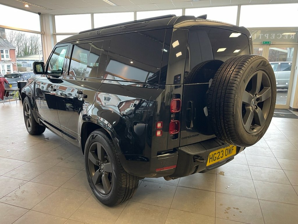 This 2023 Land Rover Defender 110 X Dynamic HSE presents a superb ownership proposition, having been meticulously maintained by just one owner from new. As a Euro 6 compliant model, it features a powerful yet efficient 3.0 litre diesel engine paired with a robust Four Wheel Drive system, ensuring capability in all conditions. The X Dynamic HSE trim level signifies a high specification, offering a refined and comfortable experience for every journey. The Defender 110 X Dynamic HSE excels with its impressive performance, achieving 0 to 60 miles per hour in a swift 6.7 seconds, a testament to its dynamic engineering. Furthermore, its low insurance group rating offers an added benefit, making it a more economical choice to own and run. With a substantial towing weight of 3500 kg, this vehicle is exceptionally versatile, ready for both everyday driving and more demanding tasks. Rear Seat Conversion. Air Suspension Pack, Head Up Display, Secure Tracker Pro (12 Month Subscriptio, Santorini Black, Cross Car Beam in Dark Grey Powder Coat , Comfort and Convenience Pack, Cold Climate Pack, Extended Black Exterior Pack, Electrically Deployable Towbar, 11.4in Touchscreen, 12V Socket in Loadspace, 14-Way Heated and Cooled Electric Memory, 2-Zone Automatic Climate Control, 20in Alloy Wheels - Style 5098 - 5 Spoke, 20in Full Size Spare Wheel, 360 Degree Parking Aid, 3D Surround Camera, ABS - Anti Lock Braking System, ACC - Adaptive Cruise Control, AHBA - Auto High Beam Assist, Additional Lashing Points, Airbags - Driver, Airbags - Front Passenger, All Season Tyres, Alpine Lights, Android Auto, App
