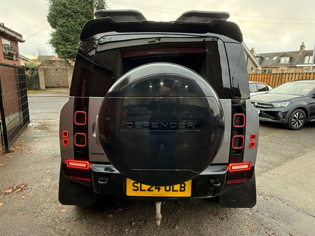 This 2024 Land Rover Defender 90 D300 X Dynamic HSE boasts a clear vehicle history, offering peace of mind alongside its impressive capabilities. Powered by a robust 3.0L Diesel engine and featuring Four Wheel Drive, this Euro 6 compliant model is ready for any adventure. Its X Dynamic HSE trim level is enhanced with striking 22in Riviera Alloy Wheels and a practical Detachable Towbar, capable of towing up to 3500 kg. Inside, you'll find luxurious 14 way Heated Electric Seats with Driver Memory, a Heated Steering Wheel for added comfort, and a sophisticated 3D Surround Camera system for effortless parking and towing assistance. The Defender 90 D300 X Dynamic HSE excels with its performance, achieving 0-60mph in a swift 6.3 seconds, demonstrating its dynamic prowess. This acceleration highlights how the vehicle offers a more engaging driving experience compared to similar models. Furthermore, its placement in a low insurance group indicates that running costs are kept more manageable, making this capable and well equipped Land Rover an attractive proposition for a wide range of drivers. Leather Steering Wheel, Detachable Towbar, 22in Alloy Wheels - Style 5098 - 5 Spoke, 11.4in Touchscreen, 12V Socket in Loadspace, 14-Way Heated and Cooled Electric Seats , 2-Zone Automatic Climate Control, 20in Alloy Wheels - Style 5098 - 5 Spoke, 20in Full Size Spare Wheel, 360 Degree Parking Aid, 3D Surround Camera, 40-20-40 Folding Rear Seats with Centre , ABS - Anti Lock Braking System, ACC - Adaptive Cruise Control, AHBA - Auto High Beam Assist, Airbags - Driver, Airbags - Front Passenger, All Season Tyres, Alpine Lights, Android Auto, Apple CarPlay, Auto-Dimming Interior Rear View Mirror, Automatic Headlight Levelling, Automatic Headlights and Rain Sensing Wi, Black Contrast Roof, Blac