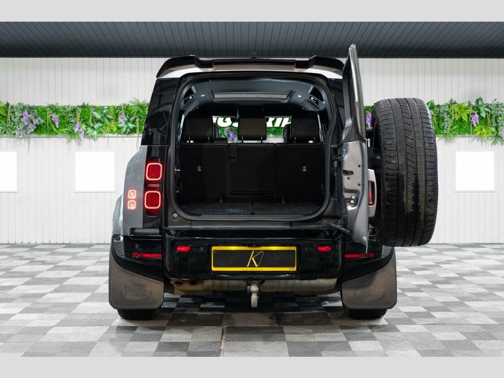Stunning MEGA SPEC 2021 Defender 110 in top of the range X-dynamic HSE with the most sought after diesel engine 3.0 Straight-6 MHEV 300bhp with the rare 7 seat option and Deployable towbar. This one stands out with the Full black exterior pack, Black Defender Lettering, 22" Gloss Black wheels, Painted Red brake calipers, Fixed black side steps, XL classic mudflaps, Painted Red tow eye hooks. Options from factory: 10.4" screen and full digital display, Air suspension pack, 3-zone climate control, Family pack which includes 7 seats, Electrically Deployable towbar, Amazing LED headlights, Heated Washer jets, Air quality sensor, Cabin Air Purfification Plus, Electric memory heated and cooled seats, Adaptive cruise control, heated steering wheel, Lane assist, Keyless entry/exit and start. heated dimming power folding wing mirrors with lane change assist. Electric steering column, Meridian sound system. blind spot assist plus lotrs more... Full history and 2 keys. Just serviced & MOT'd Sep 2025 and new rear pads. Extended Black Exterior Pack, Three-Zone Climate Control with Rear Coo, Cross Car Beam in White Powder Coat Brus, Cabin Air Ionisation, Towing Pack, 22in Full Size Spare Wheel, 60-40 Load Through Rear Seats with Manua, Windsor Leather-Robustec - Ebony-Ebony, Eiger Grey, Family Pack, Electrically Deployable Towbar, 22in Alloy Wheels - Style 5098 - 5 Spoke, 10in Touchscreen, 12V Socket in Loadspace, 14-Way Heated and Cooled Electric Memory, 2-Zone Automatic Climate Control, 20in Alloy Wheels - Style 5098 - 5 Spoke, 20in Full Size Spare Wheel, 360 Degree Parking Aid, 3D Surround Camera, 40-20-40 Folding Rear Seats with Centre , ABS - Anti Lock Braking System, ACC - Adaptive Cruise Control, Adap