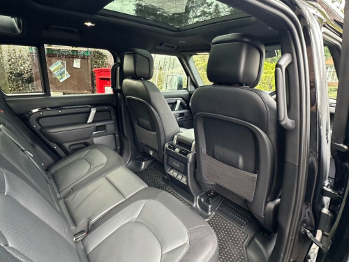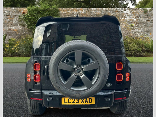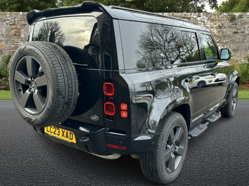 This 2023 Land Rover Defender 110 D300 X Dynamic HSE presents an exceptional opportunity with its remarkably low mileage of just 21,000 miles. This four wheel drive model boasts a powerful 3.0 litre diesel engine, meeting Euro 6 emission standards, and offers a substantial towing weight of 3500 kg. Inside, you'll find a Meridian surround sound system for an immersive audio experience, adaptive cruise control for effortless journeys, and Apple CarPlay integration for seamless connectivity. The X Dynamic HSE trim is further enhanced by stylish 20 inch alloy wheels in Satin Dark Grey and a sliding panoramic roof, allowing you to enjoy the open sky. The Defender 110 D300 X Dynamic HSE excels in several key areas, making it a superior choice. Its impressive acceleration, reaching 0 to 60 mph in just 6.6 seconds, demonstrates its dynamic performance. Furthermore, the generous boot space ensures you have ample room for all your luggage or equipment, a significant advantage for families or those with active lifestyles. The vehicle also benefits from a low insurance group, which can contribute to lower running costs. Santorini Black, 20in Alloy Wheels - Style 5094 - 5 Spoke, 11.4in Touchscreen, 12V Socket in Loadspace, 14-Way Heated and Cooled Electric Memory, 2-Zone Automatic Climate Control, 20in Alloy Wheels - Style 5098 - 5 Spoke, 20in Full Size Spare Wheel, 360 Degree Parking Aid, 3D Surround Camera, 40-20-40 Folding Rear Seats with Centre , ABS - Anti Lock Braking System, ACC - Adaptive Cruise Control, AHBA - Auto High Beam Assist, Airbags - Driver, Airbags - Front Passenger, All Season Tyres, Alpine Lights, Android Auto, Apple CarPlay, Assisted Tailgate with Soft Close, Automatic Headlight Levelling, Automatic Headlights and Rain Sensing Wi, Black Contrast Roof, Black Exposed Rear Recovery Eyes, B