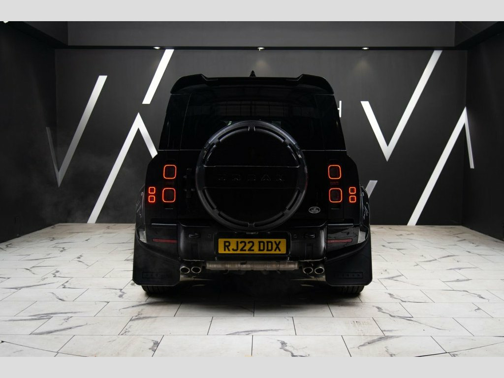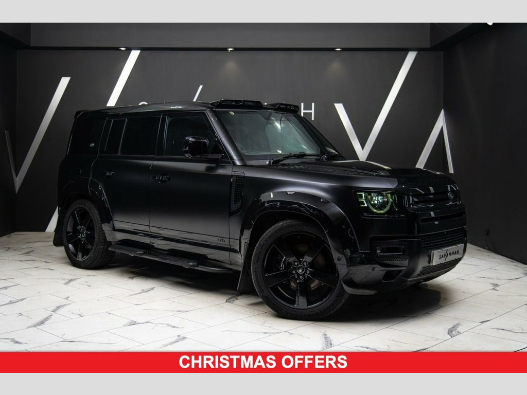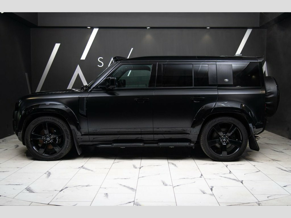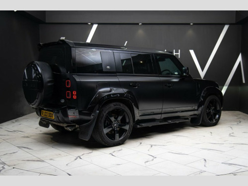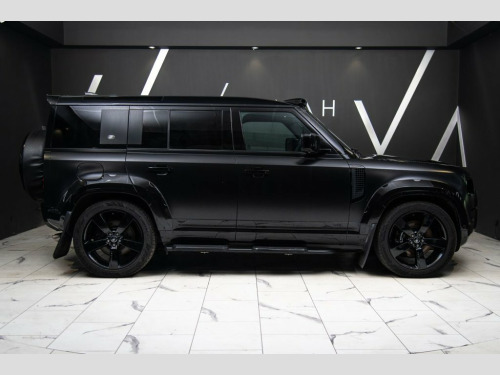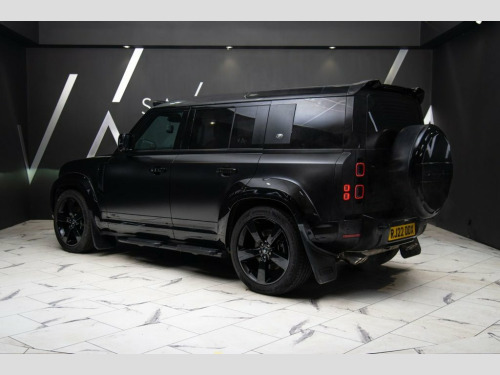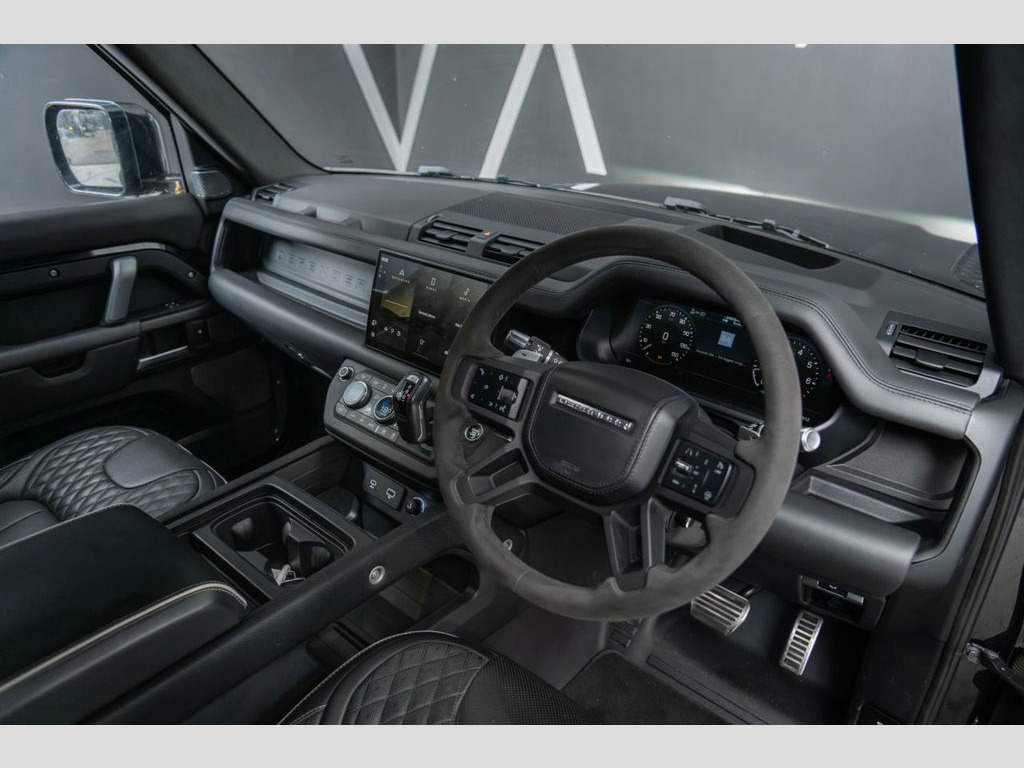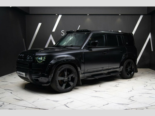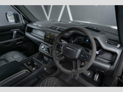 LAND ROVER DEFENDER 5.0 P525 V8 SUV URBAN STYLING KIT 5dr Petrol Auto 4WD Euro 6 (s/s) (525 ps) Commanding presence meets uncompromising capability in this Santorini Black Land Rover Defender V8, boasting the Extended Black Exterior Pack, 22in Gloss Black Style 5098 alloys, and contrasting Black roof with quad exhausts. Inside, a luxurious cabin finished in Ebony Windsor leather with Extended Leather Upgrade features 14-way heated and cooled electric memory front seats, a suedecloth steering wheel, illuminated V8 treadplates, and a ClearSight interior mirror. Cutting-edge technology includes a 3D Surround Camera, 11.4in Pivi Pro touchscreen, Head-Up Display, Meridian Surround Sound System, wireless device charging, and Apple CarPlay/Android Auto connectivity. Terrain Response 2 with Dynamic Program, Adaptive Dynamics, and an Electronic Active Differential ensure unparalleled all-terrain performance, supported by Electronic Air Suspension and Wade Sensing. Driver assistance and safety features abound with Blind Spot Assist, Adaptive Cruise Control, Lane Keep Assist, Traffic Sign Recognition, Emergency Braking, and Clear Exit Monitor. Enhanced convenience comes with an electrically deployable towbar, Assisted Tailgate with soft close, Activity Key, fridge compartment, and a Sliding Panoramic Roof. Rugged utility meets refined comfort with durable rubber flooring, rear heated folding seats, and a domestic plug socket, making this the most capable and indulgent Defender to date. 22in Alloy Wheels - Style 5098 - 5 Spoke, Windsor Leather - Ebony, Extended Black Exterior Pack, Santorini Black, 11.4in Touchscreen, 12V Socket in Loadspace, 14-Way Heated and Cooled Electric Memory, 22in Full Size Spare Wheel, 360 Degree Parking Aid, 3D Surround Camera, 40-20-40 Folding - Heated Rear Seats wit, ABS - Anti Lock Braking System, ACC - Adaptive Cruise Control, ATPC - All Terrain Progress Control, Activity Key, Adaptive Dynamics, Advanced Tow Assist, Air Quality Sensor, Airbags - Driver, Airbags - Front Passenger, All Season Tyres, Alpine Lights, Android Auto, Apple CarPlay, Assisted Tailgate with Soft Close, Automatic Headlight Levelling, Automatic Headlights and Rain Sensing