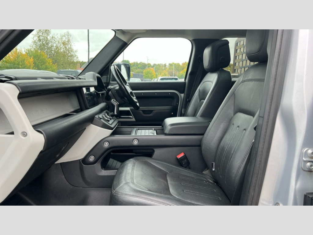 Land Rover Defender 2.0 D240 HSE 110 5dr Auto 10" touch screen, 360 degree parking aid, 3D Surround Camera with 360 View, 180 Rear View, Front Traffic Detection, Forward Vehicle Guidance, Tow Hitch Assist and clear sight Ground View, Adaptive cruise control, Android Auto, Apple CarPlay, Blind spot assist, Bluetooth system, Clear exit monitor, Click and go integrated base unit, Connected navigation pro, Driver condition monitor, Interactive driver display, Lane keep assist, PAS, Pivi Pro connected navigation system with upgraded Infotainment, Rear collision monitor, Rear traffic monitor, Traffic sign recognition with adaptive speed limiter, Trip computer, Wade Sensing, Adaptive dynamics, Electronic air suspension, DAB Radio (Digital Audio Broadcasting), Automatic headlight levelling, Automatic headlights, ClearSight interior rear view mirror, Front fog lights, Heated windscreen, LED tail lights, Matrix LED headlights with signature DRL, Power fold, auto-dimming, heated door mirrors with memory and approach lights, Puddle lights, Rain sensing windscreen wipers, Signature graphic (with interior storage), Sliding panoramic roof, Standard treadplates, 14 way heated and cooled electric adjustable memory front seats with 4 way manual headrests, Carpet mats, Electric reach + rake adjustable steering column, Extended leather upgrade, Front passenger isofix child seat attachment, Heated steering wheel, Leather gearshift, Leather steering wheel, Loadspace cover, Morzine headlining, Multifunction steering wheel, Rear headrests, Rear ISOFIX, Sunvisors with illuminated vanity mirrors, Twin front cupholders with cover, Windsor leather upholstery, Online pack with data plan - Defender, 5 x 3 point seatbelts, ABS, Driver and passenger airbags, Emergency braking, ESP + traction control, TPMS (Tyre pressure monitoring system), Alarm, Immobiliser, Intrusion sensor, Keyless entry and go, Locking wheel nuts, Remote locking