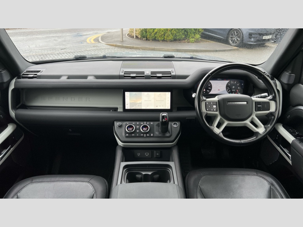 Land Rover Defender 2.0 P300 X-Dynamic SE 90 3dr Auto 360 degree parking aid, 3D Surround Camera with 360 View, 180 Rear View, Front Traffic Detection, Forward Vehicle Guidance, Tow Hitch Assist and clear sight Ground View, Android Auto, Apple CarPlay, Assisted tailgate with soft close, Blind spot assist, Bluetooth system, Brake pad wear indicator, Clear exit monitor, Click and go integrated base unit, Connected navigation pro, Driver condition monitor, Electric power assisted steering (EPAS), Interactive driver display, Lane keep assist, Push button start, Rear traffic monitor, Traffic sign recognition with adaptive speed limiter, Trip computer, Wade Sensing, DAB Radio (Digital Audio Broadcasting), Meridian 400w sound audio system with 11 speakers and subwoofer, Pivi pro connected, Automatic headlight levelling, Automatic headlights, Black exposed rear recovery eyes, Centre high mounted stop light, Electric heated/power fold door mirrors with approach lights and auto dimming driver side, Electric windows with one touch open/close and anti-trap, Follow me home lighting, Front fog lights, Heated rear window with timer, Heated windscreen, Illuminated metal treadplates with brand name script, LED tail lights, Matrix LED headlights with signature DRL, Privacy glass, Puddle lights, Rain sensing windscreen wipers, Rear fog lights, Rear wiper, Trailer stability assist, X-Dynamic badge, 12V power socket in loadspace, 3 seat bench in 2nd row, Cabin lighting, Carpet mats, Durable rubber cabin flooring, Durable rubber loadspace flooring, Electric reach + rake adjustable steering column, Footwell lights, Loadspace cover, Loadspace Hook, Multifunction steering wheel, Overhead stowage for sunglasses, Rear headrests, Rear ISOFIX, Rear reading lights, Single front passenger seat, Storage glovebox, Sunvisors with illuminated vanity mirrors, Online pack with data plan - Defender, X-Dynamic exterior pack - Defender, 5 x 3 point seatbelts, ABS, Brake hold function, Cornering brake control (CBC), Customer configurable autolock, Driver and passenger airbags, DSC - Dynamic Stability Control, EBD - Electronic brakeforce distribution, Electric parking brake (EPB), Emergency braking, ESP + traction control, Front airbags with passenger seat occupant detector, HDC - Hill descent control, Hill launch assist, Low traction launch, Remote for (e-Call,Optimised assistance call,InControl app,Climate,beep and flash and door), RSC - Roll stability control, Seat belt reminder, TPMS (Tyre pressure monitoring system), Alarm, Immobiliser, Intrusion sensor, Keyless entry and go, Locking wheel nuts
