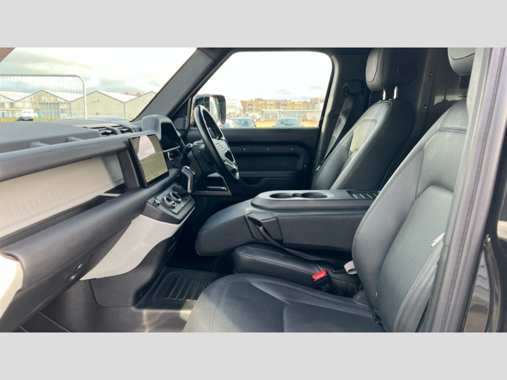 Land Rover Defender 3.0 D250 Hard Top HSE Auto [3 Seat] Customer Configurable Autolock, 11.4" touchscreen, 360 parking aid, 3D Surround Camera with 360 View, 180 Rear View, Front Traffic Detection, Forward Vehicle Guidance, Tow Hitch Assist and clear sight Ground View, Adaptive cruise control, Blind spot assist, Brake Hold, Driver condition monitor, Electric power assisted steering (EPAS), Lane keep assist, Low traction launch, Pivi pro connected, Rear collision monitor, Rear traffic monitor, Traffic sign recognition adaptive speed limiter, Trip computer, Tyre pressure monitor, Wade Sensing, Android Auto, Apple CarPlay, DAB Radio (Digital Audio Broadcasting), Meridian 280W sound audio system with 7 speakers with subwoofer, Alpine lights, Assisted tailgate, Auto High Beam Assist, Automatic headlight levelling, Automatic headlights and rain sensitive front wipers, Centre high mounted stop light, ClearSight interior rear view mirror, Electric heated/power fold door mirrors with approach lights and auto dimming driver side, Electric windows with one touch open/close and anti-trap, Exterior signage panel, Follow me home lighting, Front fog lights, Heated rear window with timer, Heated windscreen, LED tail light, Privacy glass, Puddle lights, Rear fog lights, Rear wash wiper, Side-hinged tailgate, Standard roof, Standard tread plates, 14 way heated and cooled electric adjustable memory front seats with 4 way manual headrests, Additional lashing points, Dual zone climate control, Durable rubber cabin flooring, Electric adjustable steering column, Footwell lights, Front jump seat and folding front centre armrest, Front passenger seat ISOFIX points, Full height bulkhead behind row 1 seats, Glovebox storage, High sided rubber mats, Loadspace cover, Loadspace hooks, Loadspace rubber mat, Lockable and illuminated underfloor storage compartment (x1 under boot floor and x1 accessible via rear doors), Overhead stowage for sunglasses, Rear centre headrest, Rear reading light, Signature graphic, Standard seating configuration, Sunvisors with illuminated vanity mirrors, Twin front cupholders with cover, Upgraded loadspace LED lighting, Online pack - Defender with data plan, Brake pad wear indicator, Electronic traction control, Emergency braking, Front airbags, with passenger seat occupant detector, Power operated child locks, Remote for (e-Call,Optimised assistance call,InControl app,Climate,beep and flash and door), Seat belt reminder, Intrusion sensor, Keyless entry system, Locking wheel nuts, 8 speed automatic transmission, ABS and EBA, All wheel drive, CBC - (Cornering brake control), Dynamic stability control, Electronic brake force distribution, Electronic park brake, Gradient acceleration control, Hill Descent Control, Hill start assist, Particulate filter (DPF), Push button start, Roll stability control, Trailer stability assist, Twin speed transfer box (high/low range), Extended leather upgrade