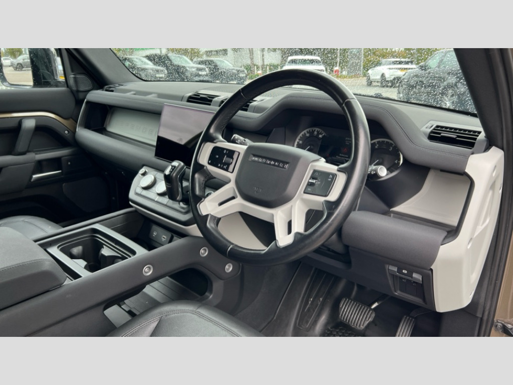 Land Rover Defender 3.0 D250 Hard Top S Auto Front and rear parking sensors, Mobile phone system with Bluetooth (does not include telephone), PAS, Service indicator, Trip computer, Lowered and uprated sports suspension, Steering wheel mounted audio controls, Automatic lighting control, Body colour bumpers, Body colour door handles, Body colour electric adjustable heated door mirrors, Chrome effect window side mouldings, Electric front windows, Front fog lights, Rear wiper, Solid paint, 4 way electrically adjustable lumbar support for drivers seat, 60/40 Split fold rear seat/load through facility, Active safety front seat head restraints, Aluminium pedals, Ambient interior lighting, Centre rear head restraint, Dark headlining, Drivers grab handle, Electric height adjustable driver seat, Ergonomic sports front seats, Extended seat cushion - Driver, Front centre armrest with storage compartment, Front map reading lights, Front seat backrest storage nets, Height adjustable outer rear head restraints, Illuminated vanity mirrors, Reach + rake adjustable steering column, Rear cupholders, Rear reading lights x 2, Sport leather gear knob, VXR 3 spoke leather steering wheel, VXR Styling pack - Insignia Hatch, 3 point seatbelts on all rear seats, ABS, Driver/Front Passenger airbags, Driver/front passenger side airbags, Electronic parking brake, ESP, Full size curtain airbags, Immobiliser, Remote central deadlocking, Remote control alarm, Sports instrumentation, 20" 5 twin spoke alloy wheels, Emergency tyre inflation kit