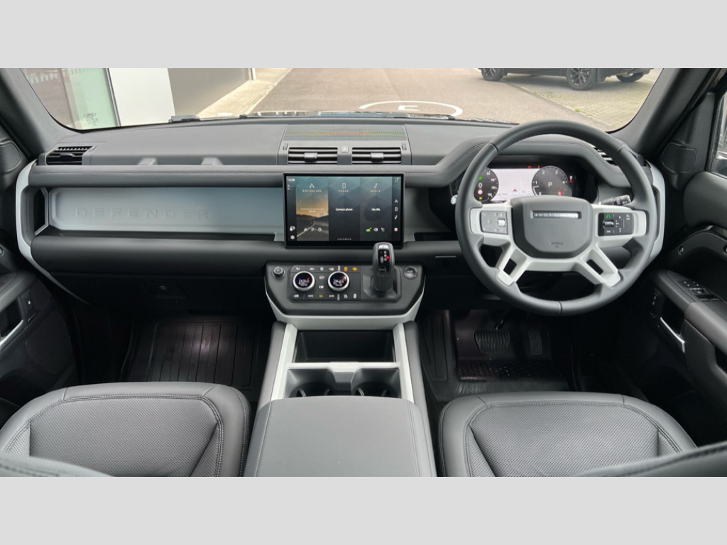 Land Rover Defender 3.0 D250 Hard Top X-Dynamic SE Auto Customer Configurable Autolock, 11.4" touchscreen, 360 parking aid, 3D Surround Camera with 360 View, 180 Rear View, Front Traffic Detection, Forward Vehicle Guidance, Tow Hitch Assist and clear sight Ground View, Adaptive cruise control, Blind spot assist, Brake Hold, Driver condition monitor, Electric power assisted steering (EPAS), Interactive Driver display, Lane keep assist, Low traction launch, Pivi pro connected, Rear collision monitor, Rear traffic monitor, Traffic sign recognition adaptive speed limiter, Trip computer, Tyre pressure monitor, Android Auto, Apple CarPlay, DAB Radio (Digital Audio Broadcasting), Meridian 280W sound audio system with 7 speakers with subwoofer, Alpine lights, Assisted tailgate, Auto High Beam Assist, Automatic headlight levelling, Automatic headlights and rain sensitive front wipers, Body coloured bonnet, Body coloured exterior Utility Panel, Centre high mounted stop light, Electric heated/power fold door mirrors with approach lights and auto dimming driver side, Electric windows with one touch open/close and anti-trap, Follow me home lighting, Heated rear window with timer, Heated windscreen, LED tail light, Privacy glass, Puddle lights, Rear fog lights, Rear wash wiper, Side-hinged tailgate, Standard roof, Standard tail door, Standard tread plates, Additional lashing points, Black exposed rear recovery eyes, Configurable cabin lighting, Dual zone climate control, Durable rubber cabin flooring, Footwell lights, Front passenger seat ISOFIX points, Full height bulkhead behind row 1 seats, Glovebox storage, High sided rubber mats, Loadspace cover, Loadspace hooks, Loadspace rubber mat, Lockable and illuminated underfloor storage compartment (x1 under boot floor and x1 accessible via rear doors), Overhead stowage for sunglasses, Rear centre headrest, Rear reading light, Standard interior, Standard seating configuration, Sunvisors with illuminated vanity mirrors, Upgraded loadspace LED lighting, Online pack - Defender with data plan, Brake pad wear indicator, Electronic traction control, Emergency braking, Front airbags, with passenger seat occupant detector, Power operated child locks, Remote for (e-Call,Optimised assistance call,InControl app,Climate,beep and flash and door), Seat belt reminder, Intrusion sensor, Keyless entry system, Locking wheel nuts, 8 speed automatic transmission, ABS and EBA, All wheel drive, CBC - (Cornering brake control), Dynamic stability control, Electronic brake force distribution, Electronic park brake, Gradient acceleration control, Hill Descent Control, Hill start assist, Particulate filter (DPF), Push button start, Roll stability control, Trailer stability assist, Twin speed transfer box (high/low range)