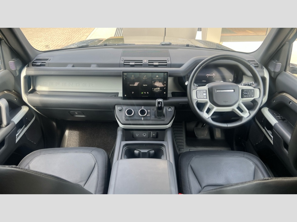 Command the road with confidence and sophistication — now available through BEDFORD LAND ROVER, where premium engineering meets enduring style. 1 x USB-C (power only) & 1 x USB-C (power & data) in Row 1, 2 x USB-C in Row 2, 11.4" touchscreen, 360 degree parking aid, 3D Surround Camera with 360 View, 180 Rear View, Front Traffic Detection, Forward Vehicle Guidance, Tow Hitch Assist and clear sight Ground View, Adaptive cruise control, Android Auto, Apple CarPlay, Blind spot assist, Bluetooth system, Brake pad wear indicator, Clear exit monitor, Connected navigation pro, Driver condition monitor, Electric power assisted steering (EPAS), Interactive driver display, Lane keep assist, Push button start, Rear collision monitor, Rear traffic monitor, Traffic sign recognition with adaptive speed limiter, Trip computer, Wireless device charging, 8 speed automatic transmission, All wheel drive system, Twin speed transfer box, DAB Radio (Digital Audio Broadcasting), Meridian 700w surround sound audio system with 15 speakers, Pivi pro connected, Automatic headlight levelling, Automatic headlights, Black exposed rear recovery eyes, Body coloured bonnet, Centre high mounted stop light, Electric heated/power fold door mirrors with approach lights and auto dimming driver side, Electric windows with one touch open/close and anti-trap, Follow me home lighting, Front fog lights, Heated rear window with timer, Heated windscreen, Illuminated metal treadplates with brand name script, LED tail lights, Matrix LED headlights with signature DRL, Panoramic rear side glass, Privacy glass, Puddle lights, Rain sensing windscreen wipers, Rear fog lights, Rear wiper, Side hinged tailgate, Sliding panoramic roof, Standard tail door, Trailer stability assist, X-Dynamic badge, 12V power socket in loadspace, 3 seat bench in 2nd row, Alpine lights, Configurable cabin lighting, Durable rubber cabin flooring, Durable rubber loadspace flooring, Electric reach + rake adjustable steering column, Electrically adjustable steering column, Extended leather upgrade, Flat load space floor tray, Footwell lights, Heated steering wheel, Loadspace cover, Loadspace Hook, Manual Tip & Slide front passenger seat, Multifunction steering wheel, Overhead stowage for sunglasses, Rear headrests, Rear ISOFIX, Rear reading lights, Row 2 seats with forward folding seat base, Single front passenger seat, Soft close tail door, Standard seat configuration, Storage glovebox, Sunvisors with illuminated vanity mirrors, Twin front cupholders, Non-smoker package, Online pack with data plan - Defender, 5 x 3 point seatbelts, ABS, Brake hold function, Cornering brake control (CBC), Customer configurable autolock, Driver and passenger airbags, DSC - Dynamic Stability Control, EBD - Electronic brakeforce distribution, Electric parking brake (EPB), Emergency brake assist, Emergency braking, ESP + traction control, Front airbags with passenger seat occupant detector, HDC - Hill descent control, Hill launch assist, Low traction launch, Remote for (e-Call,Optimised assistance call,InControl app,Climate,beep and flash and door), RSC - Roll stability control, Seat belt reminder, TPMS (Tyre pressure monitoring system), Alarm, Immobiliser, Intrusion sensor, Keyless entry, Locking wheel nuts, Secure tracker pro