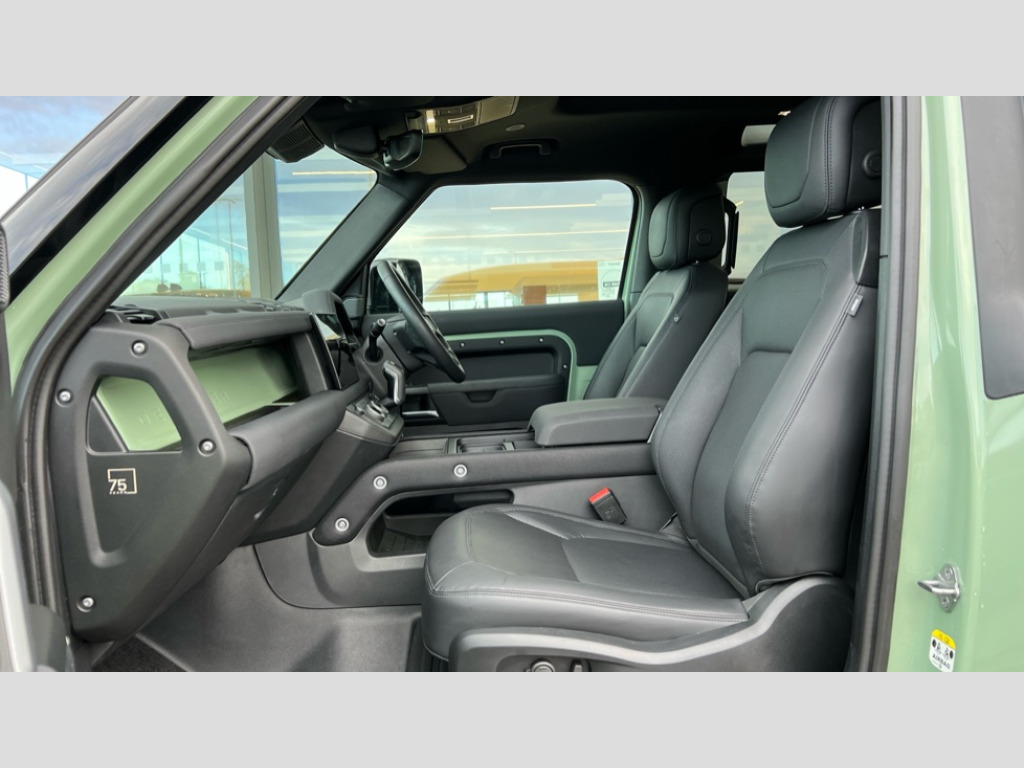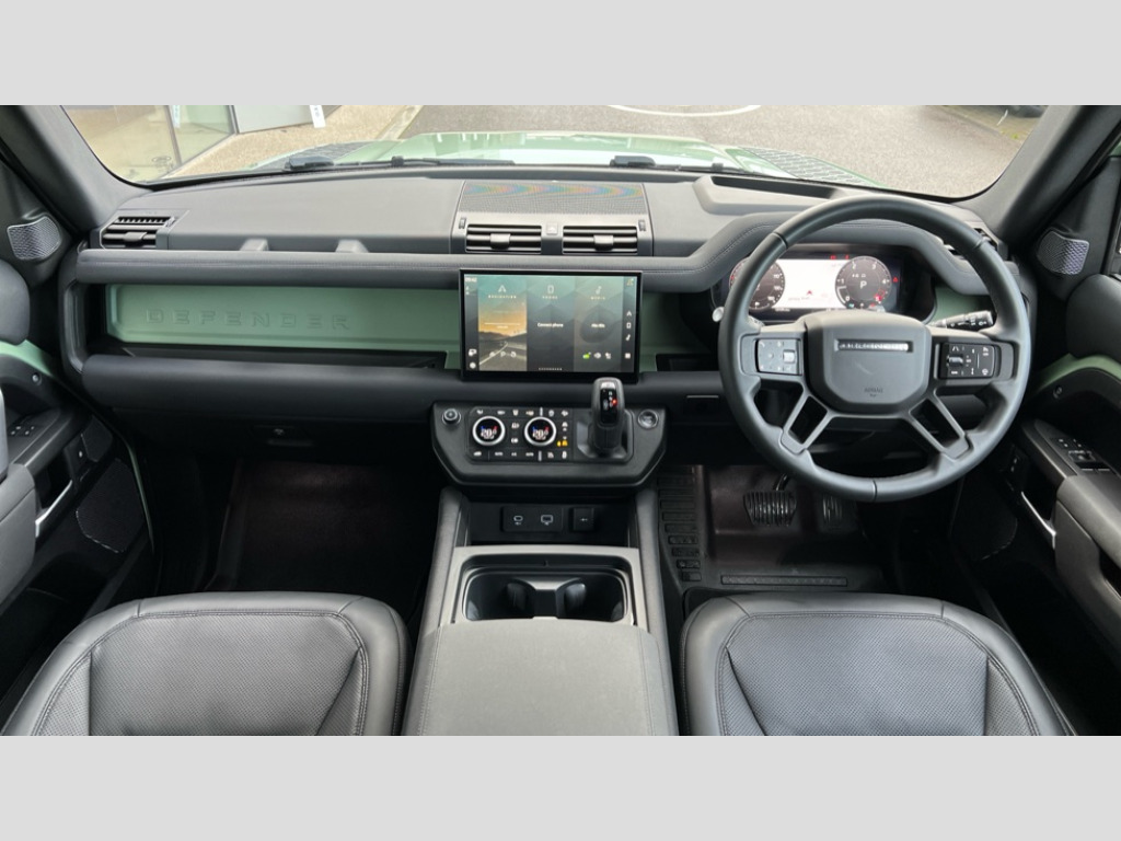 Land Rover Defender 3.0 D300 75th Limited Edition 90 3dr Auto 11.4" touchscreen, 360 degree parking aid, 3D Surround Camera with 360 View, 180 Rear View, Front Traffic Detection, Forward Vehicle Guidance, Tow Hitch Assist and clear sight Ground View, Adaptive cruise control, Android Auto, Apple CarPlay, Assisted tailgate with soft close, Blind spot assist, Bluetooth system, Brake pad wear indicator, Clear exit monitor, Connected navigation pro, Driver condition monitor, Electric power assisted steering (EPAS), Head up Display, Instrument panel ends caps with 75 years laser etching, Interactive driver display, Lane keep assist, Push button start, Traffic sign recognition with adaptive speed limiter, Trip computer, Wade Sensing, Wireless device charging with phone signal booster, 8 speed automatic transmission, Adaptive dynamics, Air suspension, All wheel drive system, Electronic active differential with brake torque vectoring, Twin speed transfer box, DAB Radio (Digital Audio Broadcasting), Meridian 400w sound audio system with 11 speakers and subwoofer, Pivi pro connected, 75 Years badge, Auto dimming interior rear view mirror, Automatic headlight levelling, Automatic headlights, Centre high mounted stop light, Electric heated/power fold door mirrors with approach lights and auto dimming driver side, Electric windows with one touch open/close and anti-trap, Follow me home lighting, Front fog lights, Heated rear window with timer, Heated washer jets, Heated windscreen, Illuminated treadplates with Defender script, Matrix LED headlights with signature DRL, Metallic paint, Privacy glass, Puddle lights, Rain sensing windscreen wipers, Rear fog lights, Rear wiper, Side hinged tailgate, Trailer stability assist, Twin rear doors, 12V power socket in loadspace, 14 way heated and cooled electric adjustable memory front seats with 4 way manual headrests, 3 seat bench in 2nd row, 40:20:40 fixed rear seats with centre armrest, Air quality sensor, Alpine lights, Cabin Air Purification plus, Durable rubber cabin flooring, Durable rubber loadspace flooring, Ebony carpet mats, Ebony morzine headlining, Electric cabin pre conditioning, Footwell lights, Front centre console refrigerator compartment, Heated steering wheel, Loadspace cover, Loadspace Hook, Multifunction steering wheel, Overhead stowage for sunglasses, Premium cabin lighting, Rear headrests, Rear ISOFIX, Rear reading lights, Resist upholstery seats, Single front passenger seat, Standard seat configuration, Storage glovebox, Sunvisors with illuminated vanity mirrors, Three zone climate control, Twin front cupholders, Non-smoker package, Online pack with data plan - Defender, 5 x 3 point seatbelts, ABS, Brake hold function, Cornering brake control (CBC), Cross car beam in grasmere green powder coat finish, Customer configurable autolock, DSC - Dynamic Stability Control, EBD - Electronic brakeforce distribution, Electric parking brake (EPB), Electronic traction control, Emergency brake assist, Emergency braking, ESP + traction control, Front airbags with passenger seat occupant detector, HDC - Hill descent control, Hill launch assist, Low traction launch, Power operated child locks, Remote for (e-Call,Optimised assistance call,InControl app,Climate,beep and flash and door), RSC - Roll stability control, Seat belt reminder, TPMS (Tyre pressure monitoring system), Alarm, Immobiliser, Intrusion sensor, Keyless entry, Locking wheel nuts, 20" 5 spoke alloy wheels with Grasmere green finish - Style 5098, 20" full size alloy spare wheel, All terrain tyres