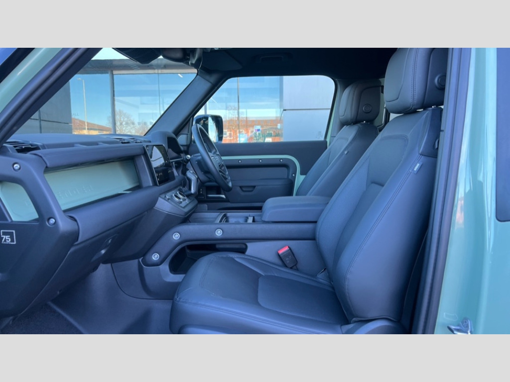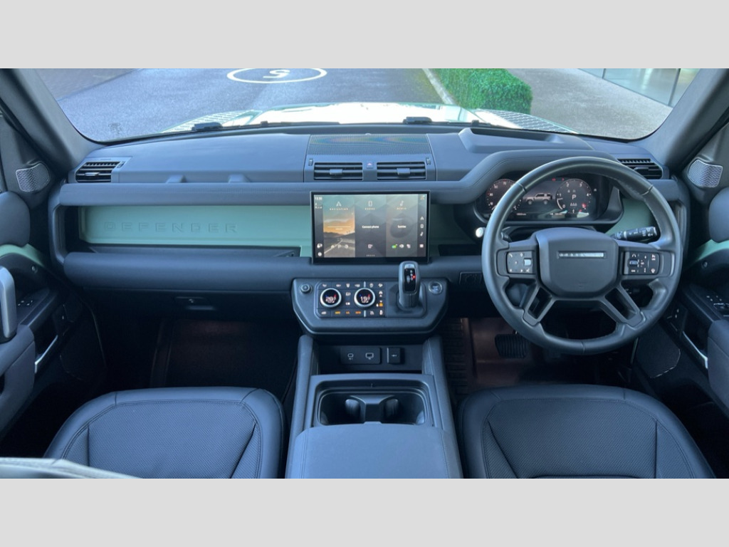 Land Rover Defender 3.0 D300 75th Limited Edition 90 3dr Auto 11.4" touchscreen, 360 degree parking aid, 3D Surround Camera with 360 View, 180 Rear View, Front Traffic Detection, Forward Vehicle Guidance, Tow Hitch Assist and clear sight Ground View, Adaptive cruise control, Android Auto, Apple CarPlay, Assisted tailgate with soft close, Blind spot assist, Bluetooth system, Brake pad wear indicator, Clear exit monitor, Connected navigation pro, Driver condition monitor, Electric power assisted steering (EPAS), Head up Display, Instrument panel ends caps with 75 years laser etching, Interactive driver display, Lane keep assist, Push button start, Traffic sign recognition with adaptive speed limiter, Trip computer, Wade Sensing, Wireless device charging with phone signal booster, 8 speed automatic transmission, Adaptive dynamics, Air suspension, All wheel drive system, Electronic active differential with brake torque vectoring, Twin speed transfer box, DAB Radio (Digital Audio Broadcasting), Meridian 400w sound audio system with 11 speakers and subwoofer, Pivi pro connected, 75 Years badge, Auto dimming interior rear view mirror, Automatic headlight levelling, Automatic headlights, Centre high mounted stop light, Electric heated/power fold door mirrors with approach lights and auto dimming driver side, Electric windows with one touch open/close and anti-trap, Follow me home lighting, Front fog lights, Heated rear window with timer, Heated washer jets, Heated windscreen, Illuminated treadplates with Defender script, Matrix LED headlights with signature DRL, Metallic paint, Privacy glass, Puddle lights, Rain sensing windscreen wipers, Rear fog lights, Rear wiper, Side hinged tailgate, Trailer stability assist, Twin rear doors, 12V power socket in loadspace, 14 way heated and cooled electric adjustable memory front seats with 4 way manual headrests, 3 seat bench in 2nd row, 40:20:40 fixed rear seats with centre armrest, Air quality sensor, Alpine lights, Cabin Air Purification plus, Durable rubber cabin flooring, Durable rubber loadspace flooring, Ebony carpet mats, Ebony morzine headlining, Electric cabin pre conditioning, Footwell lights, Front centre console refrigerator compartment, Heated steering wheel, Loadspace cover, Loadspace Hook, Multifunction steering wheel, Overhead stowage for sunglasses, Premium cabin lighting, Rear headrests, Rear ISOFIX, Rear reading lights, Resist upholstery seats, Single front passenger seat, Standard seat configuration, Storage glovebox, Sunvisors with illuminated vanity mirrors, Three zone climate control, Twin front cupholders, Non-smoker package, Online pack with data plan - Defender, 5 x 3 point seatbelts, ABS, Brake hold function, Cornering brake control (CBC), Cross car beam in grasmere green powder coat finish, Customer configurable autolock, DSC - Dynamic Stability Control, EBD - Electronic brakeforce distribution, Electric parking brake (EPB), Electronic traction control, Emergency brake assist, Emergency braking, ESP + traction control, Front airbags with passenger seat occupant detector, HDC - Hill descent control, Hill launch assist, Low traction launch, Power operated child locks, Remote for (e-Call,Optimised assistance call,InControl app,Climate,beep and flash and door), RSC - Roll stability control, Seat belt reminder, TPMS (Tyre pressure monitoring system), Alarm, Immobiliser, Intrusion sensor, Keyless entry, Locking wheel nuts, 20" 5 spoke alloy wheels with Grasmere green finish - Style 5098, 20" full size alloy spare wheel, All terrain tyres