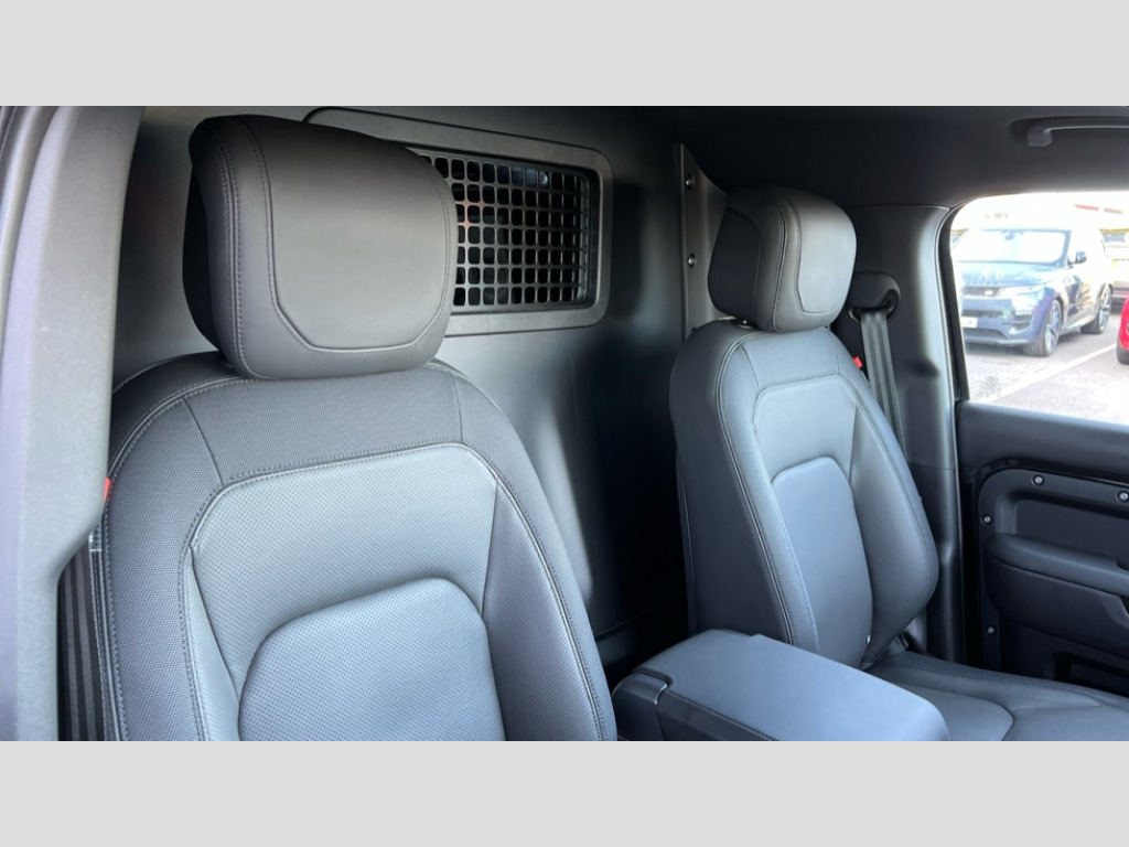 Land Rover Defender 3.0 D300 Hard Top X-Dynamic HSE Auto Information centre, Intelligent driver information system (IDIS), Service interval indicator, Sports tuned power steering, Trip computer, Diesel particulate filter, Lowered sports chassis, Auxiliary input socket, Remote audio controls on steering wheel, Active bending headlights, Adaptive brake lights, Auto dimming rear view mirror, Automatic folding door mirrors with ground lights, Black roof rails, Body colour bumpers, Day time running light, Electric front+rear windows, Electric heated + adjustable door mirrors, Headlamp cleaning system, Headlamp levelling, Heated washer nozzles, Home safe and approach lighting, Matt silver finish door mirrors, Matt Silver grille, Rain and tunnel sensor, Rear diffuser, Side marker illumination, Silk metal window trim, Tinted windscreen, Twin exhaust pipes, Xenon headlights, 12V power point front, 12V socket in rear of vehicle, Air quality control system, Aluminium sports pedals, B Pillar ventilation, Driver/passenger lumbar adjustment, Electric drivers seat with memory + mirrors memory, Electric folding rear headrests, Electronic climate control (ECC), Forward folding front passenger seat, Front centre armrest with cupholder, Front head restraints, Front sports seats, Front/rear reading lights, Grocery bag holder, Height adjustable driver/front passenger seats, Height/reach adjustable steering column, Illuminated driver/passenger vanity mirrors, Isofix attachments on outer rear seats, Leather gear knob, Load cover and protection net, R Design leather sports steering wheel, Rear armrest with storage + cupholders, Sports floor mats, Ticket holder, Versatile split folding rear seat - 40/20/40, WHIPS - Whiplash Protection System, 5 x 3 point seatbelts, ABS+EBA, City safety braking system, DSTC-Dynamic Stability and Traction Control, Dual stage driver/passenger airbags, Electronic parking brake, Front and rear outer seat belt pre-tensioners, Inflatable curtain, Passenger airbag deactivate switch, Rear seatbelt warning indicator, Side airbags, SIPS airbags, Warning triangle, Anti theft alarm, Deadlocking system, Immobiliser, Inclination sensor, Key integrated remote control central locking, Locking wheel nuts, Remote locking fuel filler flap, Aluminium trim, Blue instrument dials, Chrome rotary knobs, 18" Ixion alloy wheels, Tyre sealant kit