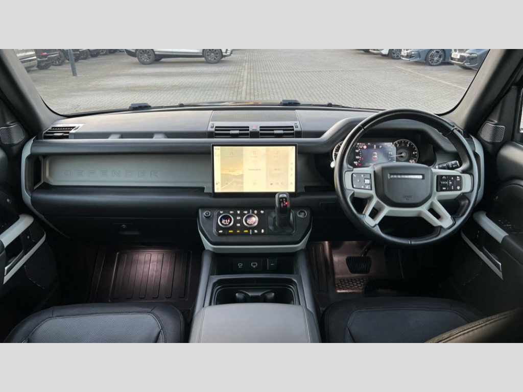Land Rover Defender 3.0 D300 Hard Top X-Dynamic HSE Auto 7" colour screen, Chronograph instrument dials, Information centre, Intelligent driver information system (IDIS), PAS, RTI Navigation system + Europe DVD map, Service interval indicator, Trip computer, Diesel particulate filter, Auxiliary input socket, Remote audio controls on steering wheel, Active bending headlights, Adaptive brake lights, Auto dimming rear view mirror, Automatic folding door mirrors with ground lights, Chrome side window trim, Colour co-ordinated bumpers and mirrors, Day time running light, Electric front+rear windows, Electric heated + adjustable door mirrors, Headlamp cleaning system, Headlamp levelling, Heated washer nozzles, Home safe and approach lighting, Rain and tunnel sensor, Side marker illumination, Silver roof rails, Tinted windscreen, Xenon headlights, 12V power point front, 12V socket in rear of vehicle, 3 spoke leather steering wheel, Air quality control system, B Pillar ventilation, Driver/passenger lumbar adjustment, Electric drivers seat with memory + mirrors memory, Electric folding rear headrests, Electronic climate control (ECC), Floor mats, Forward folding front passenger seat, Front centre armrest with cupholder, Front head restraints, Front/rear reading lights, Grocery bag holder, Height adjustable driver/front passenger seats, Height/reach adjustable steering column, Illuminated driver/passenger vanity mirrors, Isofix attachments on outer rear seats, Leather gear knob, Leather upholstery, Load cover and protection net, Rear armrest with storage + cupholders, Ticket holder, Versatile split folding rear seat - 40/20/40, WHIPS - Whiplash Protection System, 5 x 3 point seatbelts, ABS+EBA, City safety braking system, DSTC-Dynamic Stability and Traction Control, Dual stage driver/passenger airbags, Electronic parking brake, Front and rear outer seat belt pre-tensioners, Inflatable curtain, Passenger airbag deactivate switch, Rear seatbelt warning indicator, Side airbags, SIPS airbags, Warning triangle, Anti theft alarm, Deadlocking system, Immobiliser, Inclination sensor, Key integrated remote control central locking, Locking wheel nuts, Remote locking fuel filler flap, Chrome Mannequin on centre console, Chrome rotary knobs, Tyre sealant kit