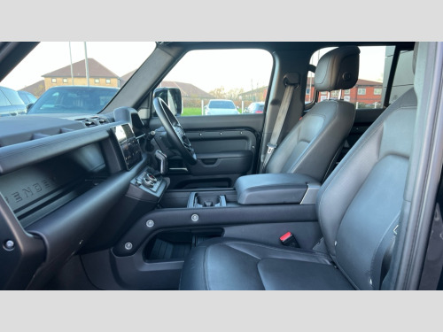 Land Rover Defender 3.0 D300 Outbound 130 5dr Auto 11.4" touchscreen, 360 degree parking aid, 3D Surround Camera with 360 View, 180 Rear View, Front Traffic Detection, Forward Vehicle Guidance, Tow Hitch Assist and clear sight Ground View, Android Auto, Apple CarPlay, Blind spot assist, Bluetooth system, Brake pad wear indicator, Clear exit monitor, Connected navigation pro, Cruise control + speed limiter, Driver condition monitor, Electric power assisted steering (EPAS), Interactive driver display, Lane keep assist, Rear collision monitor, Rear traffic monitor, Traffic sign recognition with adaptive speed limiter, Trip computer, Wade Sensing, 8 speed automatic transmission, Adaptive dynamics, All wheel drive system, Electronic air suspension, Terrain Response, Twin speed transfer box, DAB Radio (Digital Audio Broadcasting), Pivi pro connected, Automatic headlight levelling, Automatic headlights, Black exposed rear recovery eyes, Black roof rails, Centre high mounted stop light, Darkened LED tail lights, Electric heated/power fold door mirrors with approach lights and auto dimming driver side, Electric windows with one touch open/close and anti-trap, Follow me home lighting, Front fog lights, Heated rear window with timer, Heated windscreen, Illuminated metal treadplates with brand name script, LED tail lights, Privacy glass, Puddle lights, Rain sensing windscreen wipers, Rear fog lights, Rear side wing doors, Rear wiper, 12V power socket in loadspace, 3 seat bench in 2nd row, Air quality sensor, Cabin Air Purification plus, Configurable cabin lighting, Ebony morzine headlining, Front passenger isofix child seat attachment, Heated steering wheel, Loadspace cover, Multifunction steering wheel, Overhead stowage for sunglasses, Premium cabin lighting, Premium non-leather steering wheel, Rear headrests, Rear ISOFIX, Single front passenger seat, Standard interior, Standard seat configuration, Storage glovebox, Three zone climate control, Online pack with data plan - Defender, 3x3 point rear seatbelts, ABS, Brake hold function, Cornering brake control (CBC), Cross car beam in satin black powder coat brushed finish, Customer configurable autolock, DSC - Dynamic Stability Control, EBD - Electronic brakeforce distribution, Electric parking brake (EPB), Emergency brake assist, Emergency braking, ESP + traction control, Front airbags with passenger seat occupant detector, HDC - Hill descent control, Hill launch assist, Low traction launch, Power operated child locks, Remote for (e-Call,Optimised assistance call,InControl app,Climate,beep and flash and door), RSC - Roll stability control, Seat belt reminder, TPMS (Tyre pressure monitoring system), Alarm, Immobiliser, Intrusion sensor, Keyless entry, Locking wheel nuts, Natural smoked oak trim veneer