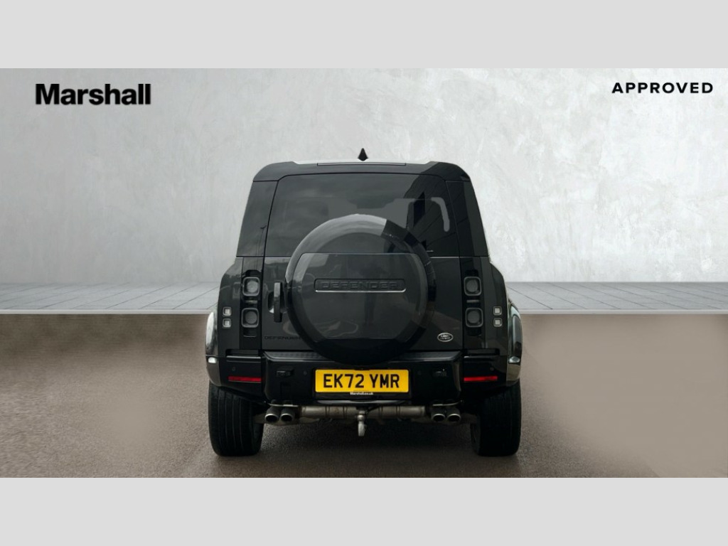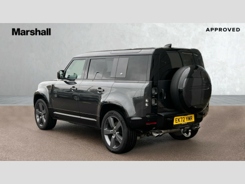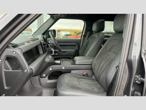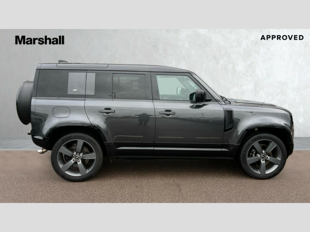 Land Rover Defender 5.0 P525 V8 110 5dr Auto 11.4" touchscreen, 360 degree parking aid, 3D Surround Camera with 360 View, 180 Rear View, Front Traffic Detection, Forward Vehicle Guidance, Tow Hitch Assist and clear sight Ground View, Adaptive cruise control, Android Auto, Apple CarPlay, Assisted tailgate with soft close, Blind spot assist, Bluetooth system, Brake pad wear indicator, Clear exit monitor, Connected navigation pro, Driver condition monitor, Electric power assisted steering (EPAS), Garage door opener (Homelink), Head up Display, Lane keep assist, Push button start, Rear collision monitor, Rear traffic monitor, Traffic sign recognition with adaptive speed limiter, Trip computer, Wade Sensing, Wireless device charging with phone signal booster, 8 speed automatic transmission, Adaptive dynamics, All terrain progress control, All wheel drive system, Configurable Terrain Response, Electronic active differential with brake torque vectoring, Electronic air suspension, Terrain Response 2 with dynamic program, Twin speed transfer box, DAB Radio (Digital Audio Broadcasting), Meridian 700w surround sound audio system with 15 speakers, Pivi pro connected, Advanced tow assist, Automatic headlight levelling, Automatic headlights, Centre high mounted stop light, ClearSight interior rear view mirror, Darkened LED tail lights, Electric heated/power fold door mirrors with approach lights and auto dimming driver side, Electric windows with one touch open/close and anti-trap, Electrically deployable towbar, Follow me home lighting, Front fog lights, Headlamp power wash, Heated rear window with timer, Heated washer jets, Heated windscreen, Illuminated metal treadplates with V8 branding, Less roof rack or roof rails, Matrix LED headlights with signature DRL, Privacy glass, Puddle lights, Quad outboard mounted exhaust pipes, Rain sensing windscreen wipers, Rear fog lights, Rear side wing doors, Rear wiper, Side hinged tailgate, Signature graphic (with interior storage), Sliding panoramic roof, Solar attenuating windscreen, Trailer stability assist, V8 badge, 12V power socket in loadspace, 14 way heated and cooled electric adjustable memory front seats with 4 way manual headrests, 3 seat bench in 2nd row, 40:20:40 folding, heated rear seats with centre armrest, Air quality sensor, Alpine lights, Bright metal pedals, Cabin Air Purification plus, Domestic plug socket, Durable rubber cabin flooring, Durable rubber loadspace flooring, Ebony morzine headlining, Electric cabin pre conditioning, Electric reach + rake adjustable steering column, Extended leather upgrade, Footwell lights, Front centre console refrigerator compartment, Front passenger isofix child seat attachment, Heated steering wheel, Leather gearshift, Loadspace cover, Loadspace Hook, Multifunction steering wheel, Overhead stowage for sunglasses, Premium cabin lighting, Rear headrests, Rear ISOFIX, Rear reading lights, Satin chrome gearshift paddles, Single front passenger seat, Standard seat configuration, Storage glovebox, Suedecloth steering wheel, Sunvisors with illuminated vanity mirrors, Three-zone Climate Control with Rear Cooling Assist, Twin front cupholders with cover, Online pack with data plan - Defender, 5 x 3 point seatbelts, ABS, Brake hold function, Cornering brake control (CBC), Cross car beam in satin black powder coat brushed finish, Customer configurable autolock, DSC - Dynamic Stability Control, EBD - Electronic brakeforce distribution, Electric parking brake (EPB), Emergency brake assist, Emergency braking, ESP + traction control, Front airbags with passenger seat occupant detector, HDC - Hill descent control, Hill launch assist, Low traction launch, Power operated child locks, Remote for (e-Call,Optimised assistance call,InControl app,Climate,beep and flash and door), RSC - Roll stability control, Seat belt reminder, TPMS (Tyre pressure monitoring system), Activity key, Alarm, Immobiliser, Intrusion sensor, Keyless entry, Locking wheel nuts, Robustec veneer