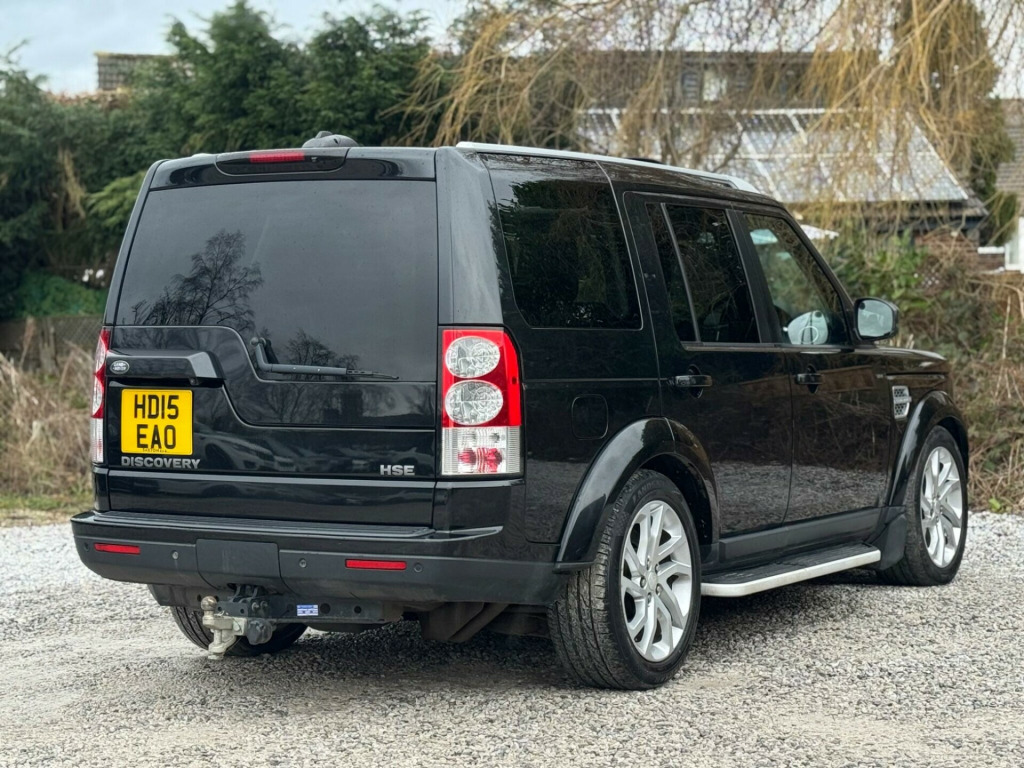 2 FORMER KEEPERSSERVICE HISTORY - 2 MAIN DEALER SERVICES - CAMBELT DONE 103,750LOGBOOKK2Audio System - 825W Meridian Sound System with Radio and Single CD-Speakers x17-7in Touch ScreenRareValuable20in Alloy Wheels - 5-Spoke Diamond TurnedVery rareAdaptive Xenon HeadlightsVery rareGlass - Privacy - Rear of B PostWindsor Leather - EbonyFeatures:Sat navHeated seatsPanoramic roofParking cameraUpgraded sound systemThis 2015 Land Rover Discovery 4 SD V6 HSE boasts a clear vehicle history, offering peace of mind for its next owner. This capable four wheel drive model features a powerful 3.0 litre diesel engine and a spacious interior with seven seats, making it ideal for families or those needing extra capacity. The HSE trim level includes desirable features such as keyless entry, front parking aid, heated front seats, automatic climate control with air filtration, and Bluetooth telephone connectivity, ensuring comfort and convenience on every journey.The Discovery 4 SD V6 HSE offers impressive performance with a 0-60mph acceleration time of just 8.8 seconds, demonstrating its strong engine capabilities. Its large boot space provides ample room for luggage or equipment, surpassing many vehicles in its class. Furthermore, its low insurance group rating indicates that running costs are kept competitive, making this a practical and well equipped choice for those seeking a versatile and reliable vehicle. dio system - 825w meridian sound system with radio and single cd-speakers x17-7in touch screen, 20in alloy wheels - 5-spoke diamond turned, adaptive xenon headlights, glass - privacy - rear of b post, windsor leather - ebony, 19in alloy wheels - 7 split spoke, active roll mitigation - arm, airbags - driver and passenger side, airbags - full size driver, airbags - full size passenger, airbags - row one and two head curtain, alarm system - perimetric, all-terrain abs - anti-lock braking system, audible seat belt warning, audio system - 380 watt meridian sound system with radio and single slot cd, auto-dimming interior mirror, automatic headlights, bluetooth telephone connectivity, bright pack, centre electronic locking differential, climate control - automatic with air filtration, colour coded front bumper and tailgate lift handle, colour coded mirror caps, complex 35/30/35 row two seat, convenience pack, cruise control, cup holders, dsc - dynamic stability control, digital audio broadcast radio - dab, door puddle and footwell lights, driver and passenger armrest, eba - emergency brake assist, epb - electronic park brake, etc - electronic traction control, electronic air suspension and terrain response, exterior door handles - premium body coloured, exterior mirrors - power fold, exterior upgrade - colour coded wheel arches - rear bumper and rear applique panel, front fog lights, global one-shot open/close windows, gradient acceleration control - gac, gradient release control, hdc - hill descent control, hdd premium navigation with touch screen, hsa - hill start assist, headlight power wash, heated front seats, interior mood lighting, keyless entry, leather steering wheel, loadspace cover, luggage net, parking aid - front, parking aid - rear, parking aid - rear view camera, power assisted steering, push button start, rsc - roll stability control, rain sensing windscreen wipers, rear wash/wipe, remote audio controls, roof rails - black finish, seats - electric drivers and passengers adjustment inc squab recline/cushion/cushion height, seats - heated rear, seats - rear folding 65/35 split, spare wheel - space saver, steering column - electric for height and reach adjustment, sun visors - illuminated vanity mirrors, sunroof - electric - sliding front glass, tsa - trailer stability assist, timed climate - 7 days no remote includes fuel burning heater, trip computer, veneer - straight grained walnut door inserts and centre console, voice control - say what you see, windows - heated rear windscreen, windscreen - heated, windscreen washer jets - heated, xenon headlamps with led signature