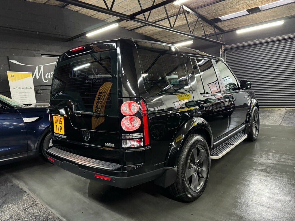 2015 Land Rover Discovery 4 HSE 3.0 SDV6 Automatic Santorini Black | Full Black Leather Interior | 2 Previous Keepers | Service History to 103,000 Miles Finished in elegant Santorini Black with a full Black leather interior, this well-presented Discovery 4 HSE offers the perfect balance of luxury, practicality, and capability. With two previous keepers and a comprehensive service history up to 103,000 miles, it has been clearly cared for and maintained to a high standard. Powered by Land Rover's robust 3.0 SDV6 engine paired with a smooth automatic transmission, this model delivers refined performance both on and off the road. The interior provides a premium driving environment, featuring heated front and rear seats, a heated leather multifunction steering wheel, and triple sunroofs (including a front tilt and slide panel) that flood the cabin with natural light. Comfort and convenience are further enhanced with Satellite Navigation, cruise control, and electric folding mirrors. Externally, this Discovery stands out with 20-inch new-shape Defender alloy wheels, side steps, privacy glass, and roof rails, giving it a commanding and contemporary look. A superb example of this ever-popular model—ideal for families and professionals alike seeking a spacious, luxurious, and dependable SUV with unmistakable British heritage. Audio System - 825W Meridian Sound Syste, Windsor Leather - Ebony with Ebony Inter, Glass - Privacy - Rear of B Post, 20in 5 Split Spoke Alloy Wheels, Active Roll Mitigation - ARM, Airbags - Driver and Passenger Side, Airbags - Full Size Driver, Airbags - Full Size Passenger, Airbags - Row One and Two Head Curtain, Alarm System - Perimetric, All-Terrain ABS - Anti-Lock Braking Syst, Audible Seat Belt Warning, Audio System - 380 Watt Meridian Sound S, Auto-Dimming Interior Mirror, Automatic Headlights, Bluetooth Telephone Connectivity, Bright Pack, Centre Electronic Locking Differential, Climate Control - Automatic with Air Fil, Colour Coded Front Bumper and Tailgate L, Colour Coded Mirror Ca