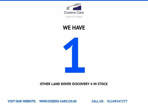** LAND ROVER DISCOVERY 4 3.0 SDV6 HSE COMING SOON TO COZENS CARS!! **20'' ALLOY WHEELS - PRIVACY GLASS - MERIDIAN SOUND SYSTEM - ELECTRIC MEMORY SEATS - DETACHABLE TOW BAR - SATELITE NAVIGATION - REAR VIEW CAMERA - BLUETOOTH CONNECTIVITY - DAB/FM/AM RADIO - 7 SEAT CONFIGURATION - FRONT AND REAR PARKING SENSORS - LEATHER MULTIFUNCTION STEERING WHEEL - PANORAMIC SUNROOF - HEATED SEATS - CLIMATE CONTROL - AUTOMATIC HEADLIGHTS - RAIN SENSOR WIPERS - ELECTRONIC AIR SUSPENSION - CRUISE CONTROL - KEYLESS START - KEYLESS ENTRY - REMOTE CENTRAL LOCKING WITH TWO KEYS - ELECTRIC WINDOWS - ISOFIX - FINISHED IN SANTORINI BLACK METALLIC WITH EBONY LEATHER INTERIORCOZENS CARS ARE EXCITED TO BRING YOU THIS STUNNING LAND ROVER DISCOVERY WITH SERVICE HISTORY AT 12K, 21K, 33K, 46K, 82K WITH CAMBELT & 95K. FRESH MOT TO BE DONE. 3 MONTH NATIONWIDE WARRANTY. We are a small family run business based in Hilmarton, Wilts, approx. 20 minutes from the M4 junction 16. We can arrange finance for most customers including those with a poor credit score. credit and debit cards are also accepted, extended warranties are available and PX is welcome. PLEASE CALL 01249 247277 TO ARRANGE A TEST DRIVE.. 20in 5 Split Spoke Alloy Wheels, Active Roll Mitigation - ARM, Airbags - Driver and Passenger Side, Airbags - Full Size Driver, Airbags - Full Size Passenger, Airbags - Row One and Two Head Curtain, Alarm System - Perimetric, All-Terrain ABS - Anti-Lock Braking System, Audible Seat Belt Warning, Audio System - 380 Watt Meridian Sound System with Radio and Single Slot CD, Auto-Dimming Interior Mirror, Automatic Headlights, Bluetooth Telephone Connectivity, Bright Pack, Centre Electronic Locking Differential, Climate Control - Automatic with Air Filtration, Colour Coded Front Bumper and Tailgate Lift Handle, Colour Coded Mirror Caps, Complex 35/30/35 Row Two Seat, Convenience Pack, Cruise Control, Cup Holders, DSC - Dynamic Stability Control, Daytime Running Lights - LED, Digital Audio Broadcast Radio - DAB, Door Puddle and Footwell Lights, Driver and Passenger Armrest, EBA - Emergency Brake Assist, EPB - Electronic Park Brake, ETC - Electronic Traction Control, Electronic Air Suspension and Terrain Response, Exterior Door Handles - Premium Body Coloured, Exterior Mirrors - Power Fold, Exterior Upgrade - Colour Coded Wheel Arches - Rear Bumper and Rear Applique Panel, Front Fog Lights, Gradient Acceleration Control - GAC, Gradient Release Control, HDC - Hill Descent Control, HDD Premium Navigation with Touch Screen, HSA - Hill Start Assist, Headlight Power Wash, Heated Front Seats, Interior Mood Lighting, Keyless Entry, Leather Steering Wheel, Loadspace Cover, Luggage Net, Parking Aid - Front, Parking Aid - Rear, Parking Aid - Rear View Camera, Pollen Filter, Power Assisted Steering, Push Button Start, RSC - Roll Stability Control, Rain Sensing Windscreen Wipers, Remote Audio Controls, Roof Rails - Black Finish, Seats - Driver Memory, Seats - Electric Driver Seat Adjustment - 12 Way, Seats - Electric Drivers and Passengers Adjustment inc Squab Recline/Cushion/Cushion Height, Seats - Heated Rear, Seats - Rear Folding 65/35 Split, Spare Wheel - Full Size Alloy, Steering Column - Electric For Height and Reach Adjustment, Steering Wheel - Multi-Function Controls, Sun Visors - Illuminated Vanity Mirrors, Sunroof - Electric - Sliding Front Glass, TPMS - Tyre Pressure Monitoring System, TSA - Trailer Stability Assist, Timed Climate - 7 Days No Remote includes Fuel Burning Heater, Trip Computer, Veneer - Straight Grained Walnut Door Inserts and Centre Console, Voice Control - Say What You See, Windows - Electric Front and Rear with Global Close, Windscreen - Heated, Windscreen Washer Jets - Heated, Xenon Headlamps with LED Signature, 20in Alloy Wheels - 5 Split Spoke Style 516 Polished, Plug in Tow Ball inc 13PIN European Type Electrics, Glass - Privacy - Rear of B Post.