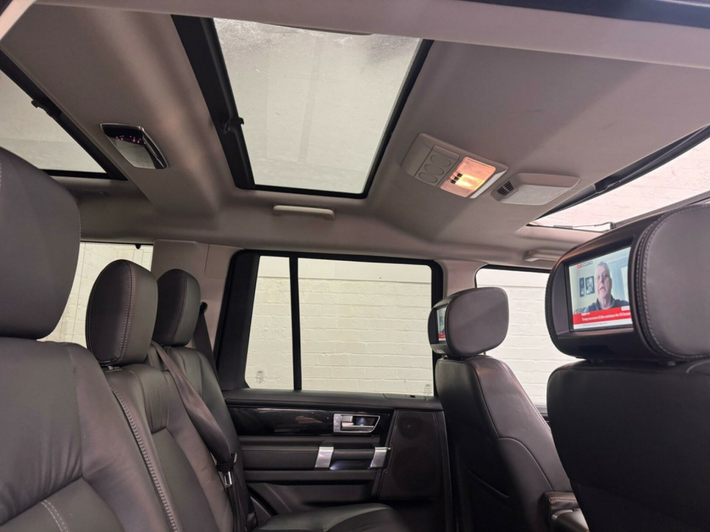 This stunning 2016 Land Rover Discovery 4 Landmark finished in the highly desired Metallic Zanzibar comes complete with a full service record including recent cambelt replacement. Two previous owners, superb condition, supplied with two keys.Phenomenal specification being the Landmark including freeview TV with rear entertainment, four headphones, heated steering wheel, meridian sound system, bluetooth phone, dab radio, reverse camera, heated windscreen, side running boards, auto xenon headlights, cruise control, heated front and rear seats, front/rear parking sensors, refrigerator under armrest, and much more.This a superb example, boasting a clear vehicle history check and having had only two owners from new. This capable four wheel drive model features a powerful 3.0L Diesel engine, delivering an impressive 0-60mph in just 8.8 seconds, all while meeting Euro 6 emissions standards. Inside, you'll find comfortable seating for seven, with the added convenience of heated front seats and driver and passenger front memory seats. The Landmark trim also includes automatic climate control with air filtration, front parking aid for easier manoeuvring, and keyless entry for effortless access.The Discovery 4 Landmark offers a generous boot space, making it ideal for families and adventurers alike, and its low insurance group rating further enhances its appeal. With a substantial towing weight of 3500 kg, this vehicle is exceptionally well equipped for a variety of tasks. These combined attributes, including its strong performance and practical features, demonstrate how this Land Rover Discovery 4 stands out from other vehicles in its class. in alloy wheels - 5 split-spoke style 511, 7in touch screen, 825w meridian surround sound system with radio and single slot cd player, active roll mitigation - arm, adaptive xenon headlights, adjustable front head restraints, airbags - driver and passenger side, airbags - full size driver, airbags - full size passenger, airbags - row one and two head curtain, airbags - third row curtain, all-terrain abs - anti-lock braking system, approach lights, audible seat belt warning, auto-dimming interior mirror, automatic headlights, bluetooth telephone connectivity, bright pack, carpet mats - premium - front and rear with contrast edging, centre high mounted stop light, climate control - automatic with air filtration, colour coded front bumper and tailgate lift handle, complex 35-30-35 second row seats, convenience pack, cruise control, cup holders, dsc - dynamic stability control, daytime running lights - led, digital audio broadcast radio - dab, digital audio amplifier, door mirrors - narvik black, driver and passenger armrest, eba - emergency brake assist, epb - electronic park brake, etc - electronic traction control, electric steering column lock, electronic air suspension - variable ride height, exterior door handles - premium body coloured, exterior mirrors - power fold, exterior upgrade, footwell lights - front, front door puddle lights, front fog lights, full extended leather pack, gradient release control, hdc - hill descent control, hsa - hill start assist, headlight power wash, heated front seats, incontrol apps, interior mood lighting, keyless entry, landmark badge, landmark engine badge, loadspace cover, locking wheel nuts, luggage net, map light - third row, narvik black grille, narvik black side vents, paddle shift, parking aid - front, parking aid - rear, parking aid - rear view camera, pollen filter, power assisted steering, push button start, rsc - roll stability control, rain sensing windscreen wipers, rear lights - led, rear screen x2, rear seat entertainment system - dvd, roof rails - extended in bright finish, satellite navigation system - hdd, seats - driver and passenger front memory, seats - front 12 way electric, seats - heated rear, seats - lumbar support - drivers, spare wheel - full size alloy, speakers x17, steering column - electric for height and reach adjustment, steering wheel - heated, steering wheel - leather with gloss black inserts, steering wheel - multi-function controls, subwoofer, sun visors - illuminated vanity mirrors, sunroof - electric - sliding front glass and fixed glass alpine roof, tmc - dynamic route guidance, tpms - tyre pressure monitoring system, tsa - trailer stability assist, tv - hybrid, terrain response, third row load space - accessory socket, timed climate - 7 days no remote includes fuel burning heater, titan bonnet and tailgate script, trip computer, usb connectivity, voice control - say what you see, volumetric alarm, white fire cordless headphones, white silver tow eye cover, windows - electric front and rear with global close, windscreen - heated, windscreen washer jets - heated, windsor leather cubby box lid, windsor leather door armrests, windsor leather door grab handles, windsor leather door top rolls, windsor leather fascia topper pad, xenon headlamps with led signature