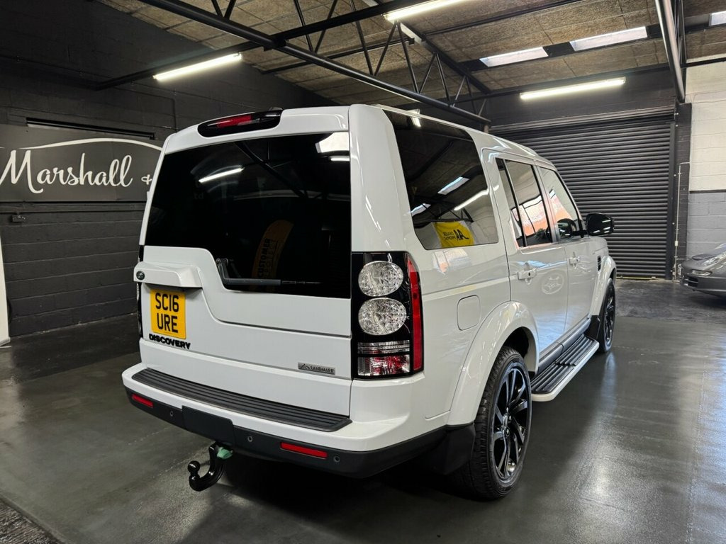2016 Land Rover Discovery 4 Landmark 3.0 SDV6 (EURO 6) Finished in Yulong White with Black Leather Interior A beautifully maintained Discovery 4 Landmark Edition, presented in timeless Yulong White with contrasting black leather upholstery. This example benefits from a comprehensive service history with 8 Land Rover main dealer services up to 79,000 miles, including cambelts replaced at 66,000 miles, ensuring complete peace of mind. Key Features Include: Factory Rear Entertainment System Satellite Navigation & Reversing Camera Heated Front and Rear Seats Heated Steering Wheel Extended Leather Dashboard & Door Cards Xenon Headlights with LED Signature Lighting Front and Rear Parking Sensors (PDC) Cruise Control Privacy Glass Black Pack Styling with 20" Gloss Black Alloy Wheels Piano Black Interior Inserts Extended Roof Rails A superb example of one of Land Rover's most desirable models — combining luxury, practicality, and capability in equal measure. Yulong White, Windsor Leather - Ebony - Ebony with Lun, 20in Alloy Wheels - 5 Split-Spoke Style , TV - Hybrid, Rear Seat Entertainment System - DVD, 7in Touch Screen, Leather Steering Wheel, 825W Meridian Surround Sound System with, Active Roll Mitigation - ARM, Adaptive Xenon Headlights, Adjustable Front Head Restraints, Airbags - Driver and Passenger Side, Airbags - Full Size Driver, Airbags - Full Size Passenger, Airbags - Row One and Two Head Curtain, Airbags - Third Row Curtain, All-Terrain ABS - Anti-Lock Braking Syst, Approach Lights, Audible Seat Belt Warning, Auto-Dimming Interior Mirror, Automatic Headlights, Bluetooth Telephone Connectivity, Bright Pack, Carpet Mats - Premium - Fr