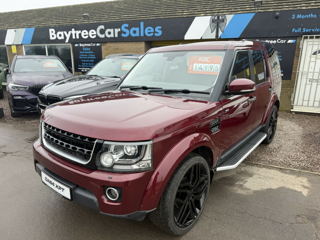 ???? Land Rover Discovery 4 3.0 SD V6 SE Tech finished in Red (Auto), 67,000 miles, 1 former keeper, , Only £14,995, , Welcome to the sale of this prime example of a Discovery 4 SE Tech — a superbly maintained, low mileage example with excellent provenance. , ???? Full Land Rover service history, ???? Just 1 former keeper from new, ???? Tyres all like brand new, ???? 22-inch alloy wheels, ???? Brake discs and pads all like brand new, , Specification includes:, , ???? Front and rear parking sensors, ???? Reverse camera, ???? Satellite navigation, ???? Heated black leather interior, ???? 7 seats – 3rd row never used, ???? Heated front and rear windscreens, ???? Electric windows all round, ???? Electric mirrors, ???? Multi-functional steering wheel, ???? Cruise control, ???? Central locking, , ???? Drives superbly and presents exceptionally well. , Important information – transparency matters:, , This vehicle has previously been subject to an insurance claim relating to damage to the drivers wing and drivers headlight. The repairs have been professionally completed and the vehicle has since been refinished and inspected. , Please do not be put off — examples with this ownership, mileage and full Land Rover history are extremely rare. , ???? These vehicles typically retail at £19,000–£20,000, ???? A huge saving to be had at £14,995, , Because we are a RAC-approved dealer, all our vehicles come with:, , ✔ Free RAC breakdown cover, ✔ Free RAC history check, ✔ 12 months MOT, ✔ Full service prior to sale, , ???? Nationwide delivery available. , ???? Call 01406 373474 for more information (even out of hours). , Please also feel free to contact us outside of hours to discuss this vehicle further.