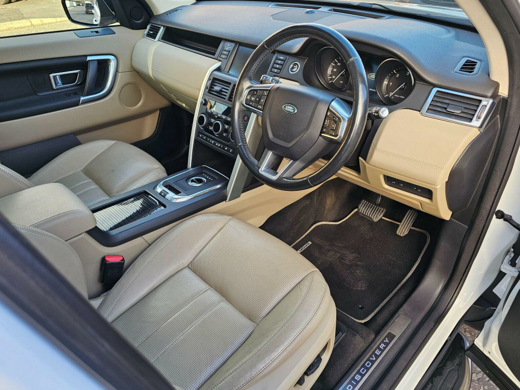 THIS EXCELLENT EXAMPLE OF THE DISCOVERY SPORT HSE SPEC LACKS FOR NOTHING. IT IS PRESENTED IN POLAR WHITE WITH SILVER ATLAS ACCENTS COMPLEMENTED BY 19 MULTI SPOKE ALLOY WHEELS. THE INTERIOR IS PRESENTED IN OATMEAL LEATHER WITH MATCHING HEADLINING. THE EXCEPTIONALLY COMFORTABLE SEATS ARE TRIMMED IN OATMEAL LEATHER WITH ELECTRIC ADJUSTMENT TO THE DRIVERS SEAT WITH FRONT SEATS BEING HEATED . HEADLIGHTS AND WIPERS ARE AUTOMATIC AND THE REARVIEW MIRROR AUTOMATICALLY DIMS. FURTHER HIGHLIGHTS OF THE SPEC INCLUDES CLIMATE CONTROL, BLUETOOTH TELEPHONE CONNECTIVITY, CRUISE CONTROL, A PANORAMIC ROOF, SAT NAV, DAB RADIO, FRONT AND REAR PARKING SENSORS WITH PARK ASSIST, REAR VIEW CAMERA, A POWERED TAILGATE,FACTORY-FITTED REAR PRIVACY GLASS, A RANGE OF OFF-ROAD AND SAFETY FEATURES WITH MUCH MORE YET TO BE DISCOVERED!, WE HAVE FULLY INSPECTED AND SERVICED THIS CAR, SO THE ONLY ISSUE FOR ITS NEW OWNER WILL BE WHERE THE NEXT TRIP SHOULD BE. PLEASE CALL 0161 761 3452 (OPTION 2) TO ARRANGE A VIEWING, TO RESERVE THE CAR OR FOR MORE INFORMATION. WHILST EVERY EFFORT HAS BEEN MADE TO ENSURE THAT THE STATED SPECIFICATION IS ACCURATE, PLEASE CHECK WITH A MEMBER OF THE SALES TEAM IF A PARTICULAR SPECIFICATION/FEATURE IS IMPORTANT TO YOU.