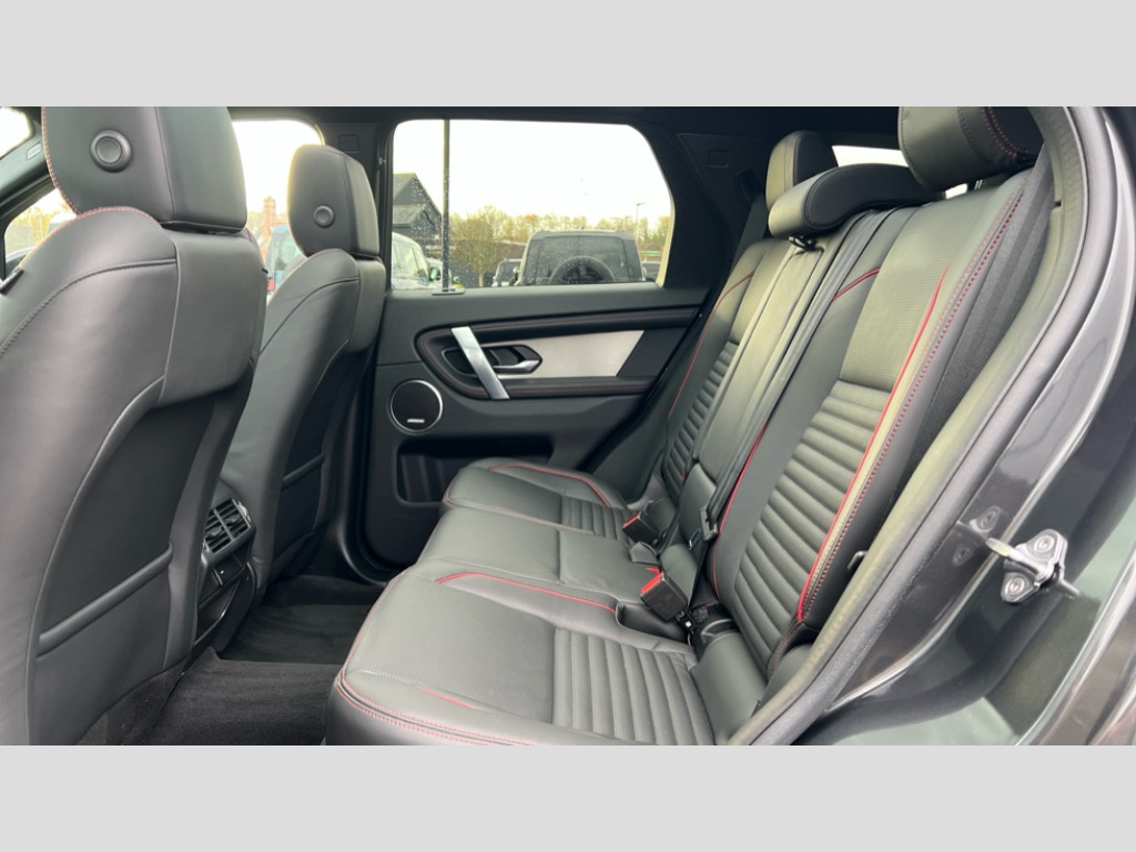 Land Rover Discovery Sport 1.5 P300e R-Dynamic HSE 5dr Auto [5 Seat] 10" touch screen, Adaptive cruise control, Android Auto, Apple CarPlay, Blind spot assist, Clear exit monitor, Driver condition monitor, eCall emergency call system, Front and rear parking aid, InControl remote premium, Lane keep assist, Locking fuel flap, PAS, Pivi Pro connected navigation system with upgraded Infotainment, Powered tailgate/boot lid, Push button start, Rear collision monitor, Rear traffic monitor, Service interval indicator, Traffic sign recognition with adaptive speed limiter, Trip computer, Wade Sensing, 7 kW onboard charger, All terrain progress control, Coil suspension system, Configurable dynamics, Dynamic stability control, Home charging cable, Public charging cable, Terrain Response 2, Bluetooth connectivity including audio streaming, Digital Audio Broadcast radio-DAB, Steering wheel mounted audio controls, 3rd brake light, Automatic headlight levelling, Automatic headlights, Black number plate plinth, Electric front/rear windows, Electric heated/power fold door mirrors with approach lights and auto dimming driver side, Front and rear recovery eyes, Front fog lights, Heated rear window, Heated windscreen including heated washer jets, Illuminated metal front treadplates with R dynamic branding, P300e badge, Privacy glass, R Dynamic badge, Rain sensing windscreen wipers, Rear fog lights, Rear side wing doors, Rear wing door, Rear wiper, 5 standard seating configuration, Bright metal pedals, Centre console with armrest, Configurable cabin lighting, Electrically adjustable steering column with memory, Footwell lights, Front and rear grab handles, Front passenger isofix child seat attachment, Heated steering wheel, Loadspace cover, Loadspace light, Overhead lighting console, Overhead stowage for sunglasses, Rear headrests, Satin chrome gearshift paddles, Sunvisors with illuminated vanity mirrors, Tilt/reach adjustable steering wheel, Black exterior pack - Discovery sport R-Dynamic SE/HSE, Online pack with data plan - Discovery, 3 point seatbelts on all seats, ABS, Brake hold function, Child locks on rear doors, Collision mitigation braking system, Cornering brake control (CBC), Driver/Front Passenger airbags, Drivers knee airbag, Electronic brake force distribution, Electronic parking brake, Emergency brake assist, ESP + traction control, Hill descent control, Hill launch assist, Pedestrian airbag system, Rear seat ISOFIX, Roll stability control, Side and curtain airbags for front and 2nd row seats, Trailer stability control, Tyre pressure monitoring system, Battery Back Up System (BBUS) with tilt sensor, Global lock and unlock switch on driver door, Intrusion sensor, Keyless entry, Locking wheel nuts, Centre stack rails in noble chrome