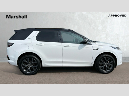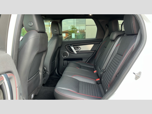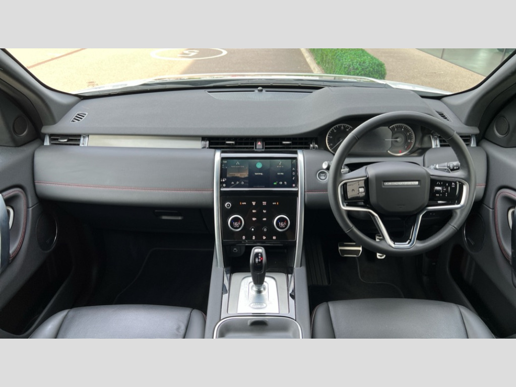 Land Rover Discovery Sport 1.5 P300e R-Dynamic SE 5dr Auto [5 Seat] 10" touch screen, Adaptive cruise control, Android Auto, Apple CarPlay, Blind spot assist, Clear exit monitor, Driver condition monitor, eCall emergency call system, Front and rear parking aid, InControl remote premium, Lane keep assist, Locking fuel flap, PAS, Pivi Pro connected navigation system with upgraded Infotainment, Powered tailgate/boot lid, Push button start, Rear collision monitor, Rear traffic monitor, Service interval indicator, Traffic sign recognition with adaptive speed limiter, Trip computer, Wade Sensing, 7 kW onboard charger, All terrain progress control, Coil suspension system, Dynamic stability control, Home charging cable, Public charging cable, Terrain Response 2, Bluetooth connectivity including audio streaming, Digital Audio Broadcast radio-DAB, Steering wheel mounted audio controls, 3rd brake light, Automatic headlight levelling, Automatic headlights, Electric front/rear windows, Electric heated/power fold door mirrors with approach lights and auto dimming driver side, Fixed panoramic sunroof with powered sunblind, Front and rear recovery eyes, Heated rear window, Heated windscreen including heated washer jets, Privacy glass, R Dynamic badge, Rain sensing windscreen wipers, Rear fog lights, Rear side wing doors, Rear wing door, Rear wiper, 5 seats, Bright metal pedals, Centre console with armrest, Footwell lights, Front and rear grab handles, Front passenger isofix child seat attachment, Loadspace cover, Loadspace light, Overhead lighting console, Overhead stowage for sunglasses, Rear headrests, Satin chrome gearshift paddles, Sunvisors with illuminated vanity mirrors, Tilt/reach adjustable steering wheel, Black exterior pack - Discovery sport R-Dynamic SE/HSE, Online pack with data plan - Discovery, 3 point seatbelts on all seats, ABS, Brake hold function, Child locks on rear doors, Collision mitigation braking system, Cornering brake control (CBC), Driver/Front Passenger airbags, Drivers knee airbag, Electronic brake force distribution, Electronic parking brake, Emergency brake assist, ESP + traction control, Hill descent control, Hill launch assist, Pedestrian airbag system, Rear seat ISOFIX, Roll stability control, Side and curtain airbags for front and 2nd row seats, Trailer stability control, Tyre pressure monitoring system, Battery Back Up System (BBUS) with tilt sensor, Global lock and unlock switch on driver door, Intrusion sensor, Keyless entry, Locking wheel nuts, Centre stack rails in noble chrome