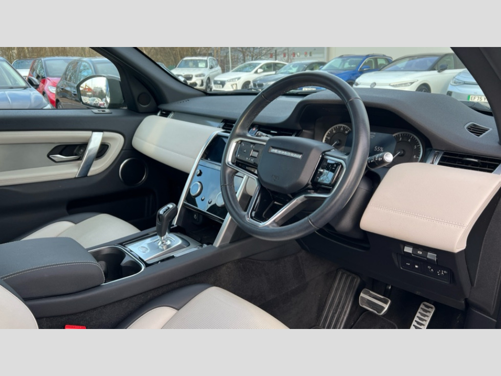 To find out more about this vehicle – simply call, click or visit us. 10" touch screen, Adaptive cruise control, Android Auto, Apple CarPlay, Driver condition monitor, eCall emergency call system, Front and rear parking aid, InControl remote premium, Lane keep assist, Locking fuel flap, PAS, Pivi Pro connected navigation system with upgraded Infotainment, Powered tailgate/boot lid, Push button start, Rear collision monitor, Service interval indicator, Traffic sign recognition with adaptive speed limiter, Trip computer, Wade Sensing, 7 kW onboard charger, All terrain progress control, Coil suspension system, Dynamic stability control, Home charging cable, Public charging cable, Terrain Response 2, Bluetooth connectivity including audio streaming, Digital Audio Broadcast radio-DAB, Steering wheel mounted audio controls, 3rd brake light, Automatic headlights, ClearSight interior rear view mirror, Electric front/rear windows, Electric heated/power fold door mirrors with approach lights and auto dimming driver side, Fixed panoramic sunroof with powered sunblind, Front and rear recovery eyes, Heated rear window, Heated windscreen including heated washer jets, R Dynamic badge, Rain sensing windscreen wipers, Rear fog lights, Rear side wing doors, Rear wing door, Rear wiper, 5 seats, Bright metal pedals, Centre console with armrest, Footwell lights, Front and rear grab handles, Front passenger isofix child seat attachment, Loadspace cover, Loadspace light, Overhead lighting console, Overhead stowage for sunglasses, Rear headrests, Satin chrome gearshift paddles, Sunvisors with illuminated vanity mirrors, Tilt/reach adjustable steering wheel, Black exterior pack - Discovery sport, Online pack with data plan - Discovery, 3 point seatbelts on all seats, ABS, Brake hold function, Child locks on rear doors, Collision mitigation braking system, Cornering brake control (CBC), Driver/Front Passenger airbags, Drivers knee airbag, Electronic brake force distribution, Electronic parking brake, Emergency brake assist, ESP + traction control, Hill descent control, Hill launch assist, Pedestrian airbag system, Rear seat ISOFIX, Roll stability control, Side and curtain airbags for front and 2nd row seats, Trailer stability control, Tyre pressure monitoring system, Battery Back Up System (BBUS) with tilt sensor, Global lock and unlock switch on driver door, Intrusion sensor, Keyless entry, Locking wheel nuts, Centre stack rails in noble chrome
