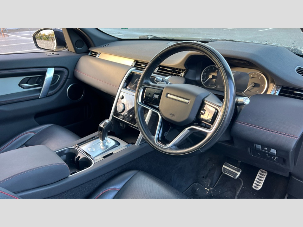 Land Rover Discovery Sport 2.0 D165 R-Dynamic S Plus 5dr Auto [5 Seat] 10" touch screen, 3D Surround Camera with 360 View, 180 Rear View, Front Traffic Detection, Forward Vehicle Guidance, Tow Hitch Assist and clear sight Ground View, Android Auto, Apple CarPlay, Driver condition monitor, eCall emergency call system, Front and rear parking aid, InControl remote premium, Lane keep assist, PAS, Pivi Pro connected navigation system with upgraded Infotainment, Powered tailgate/boot lid, Rear view camera, Service interval indicator, Traffic sign recognition with adaptive speed limiter, Trip computer, Wade Sensing, All terrain progress control, Coil suspension system, Diesel particulate filter, Terrain Response 2, Bluetooth connectivity including audio streaming, Digital Audio Broadcast radio-DAB, Steering wheel mounted audio controls, 3rd brake light, Automatic headlights, Day time running light, Electric front/rear windows, No badges, Power fold, auto-dimming, heated door mirrors with approach lights, Privacy glass, Rain sensing windscreen wipers, Rear fog lights, Rear side wing doors, Rear wiper, 3 seat bench in 2nd row, Bright metal pedals, Centre console with armrest, Front passenger isofix child seat attachment, Front passenger seat, Rear headrests, Satin chrome gearshift paddles, Sunvisors with illuminated vanity mirrors, Tilt/reach adjustable steering wheel, Black exterior pack - Discovery sport, Online pack - Discovery sport, 3 point seatbelts on all seats, ABS, Brake hold function, Child locks on rear doors, Collision mitigation braking system, Cornering brake control (CBC), Driver/Front Passenger airbags, Drivers knee airbag, Electronic brake force distribution, Electronic parking brake, Emergency brake assist, ESP + traction control, Hill descent control, Hill launch assist, Pedestrian airbag system, Rear seat ISOFIX, Side and curtain airbags for front and 2nd row seats, Trailer stability control, Tyre pressure monitoring system, Battery Back Up System (BBUS) with tilt sensor, Intrusion sensor, Locking wheel nuts, Centre stack rails in noble chrome