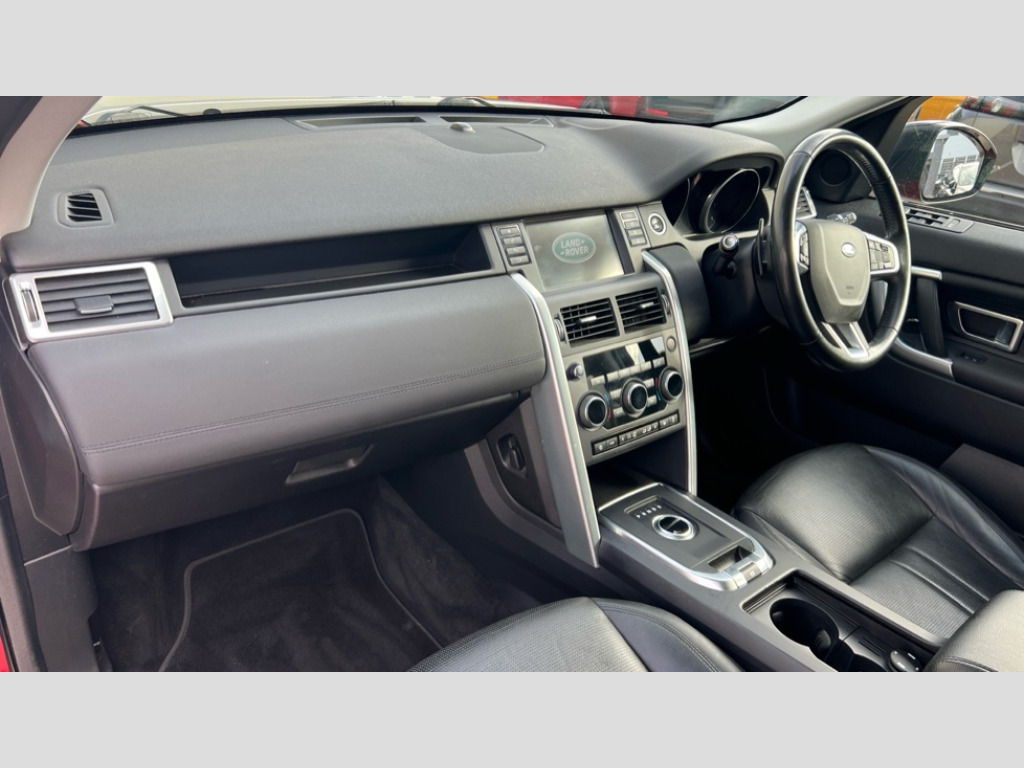 Land Rover Discovery Sport 2.0 SD4 240 HSE Black 5dr Auto 8" colour display screen, Gesture tailgate, PAS, Service interval indicator, Trip computer, All terrain progress control, Diesel particulate filter, Dynamic stability control, Bluetooth connectivity including audio streaming, DAB Digital radio, Steering wheel mounted audio controls, USB connection located in centre console, Auto dimming interior mirror, Automatic headlights with high beam assist, Body coloured bumpers, Contrast roof - Narvik Black, Electric front/rear windows, Fixed panoramic glass sunroof, Front fog lamps, Heated windscreen, Privacy glass, Rain sensitive windscreen wipers, Rear wiper, 2nd row 60/40 split/fold, 2nd row folding rear centre armrest, Air quality sensor, Centre console with sliding front armrest, Dual zone climate control, Front + rear carpet mats, Front and rear headrests, Grained Leather upholstery, Illuminated vanity mirrors, Isofix child seat preparation, Loadspace cover, Row 2 passenger air vents, Slide/recline 2nd row seats, Tilt/reach adjustable steering wheel, Twin cupholders in rear centre armrest, 3 point seatbelts on all seats, ABS, Collision mitigation braking system, Cornering brake control (CBC), Driver/Front Passenger airbags, Drivers knee airbag, Electronic brake force distribution, Electronic parking brake, Emergency brake assist, ESP + traction control, Hill start assist, Pedestrian airbag system, Roll stability control, Side and curtain airbags for front and 2nd row seats, Tyre pressure monitoring system, Immobiliser, Keyless entry, Locking wheel nuts, Perimeter alarm with volume sensing, Centre stack side rails in satin brushed aluminium, 20" 5 split spoke alloy wheels with gloss black finish - Style 511