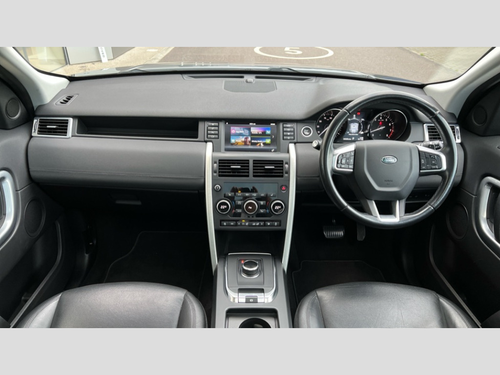 Land Rover Discovery Sport 2.0 Si4 240 HSE 5dr Auto 8" colour display screen, Electric gesture tailgate/boot lid, PAS, Service interval indicator, Trip computer, All terrain progress control, Dynamic stability control, Bluetooth connectivity including audio streaming, CD/DVD player, DAB Digital radio, InControl protect, Steering wheel mounted audio controls, USB connection located in centre console, Auto dimming interior mirror, Automatic headlights with high beam assist, Body colour door handles, Body coloured bumpers, Electric front/rear windows, Fixed panoramic glass sunroof, Front fog lamps, Heated windscreen, Rain sensitive windscreen wipers, Rear wiper, 2nd row 60/40 split/fold, 2nd row folding rear centre armrest, Air quality sensor, Carpet mats, Centre console with sliding front armrest, Dual zone climate control with row 2 vents, Front and rear headrests, Illuminated vanity mirrors, Isofix child seat preparation, Leather steering wheel, Loadspace cover, Perforated grained leather upholstery, Slide/recline 2nd row seats, Third row dual adjustable individual seats, Tilt/reach adjustable steering wheel, Twin cupholders in rear centre armrest, 3 point seatbelts on all seats, ABS, Autonomous emergency braking, Collision mitigation braking system, Cornering brake control (CBC), Driver/Front Passenger airbags, Drivers knee airbag, Electronic brake force distribution, Electronic parking brake, Emergency brake assist, ESP + traction control, Hill descent control, Hill start assist, Pedestrian airbag system, Roll stability control, Side and curtain airbags for front and 2nd row seats, Tyre pressure monitoring system, Immobiliser, Intrusion sensor, Keyless entry, Locking wheel nuts, Perimeter alarm with volume sensing, Remote central locking, Centre stack side rails in satin brushed aluminium