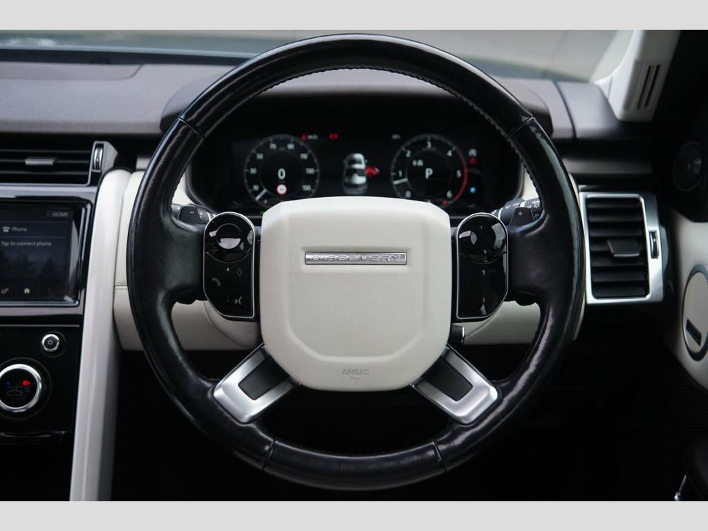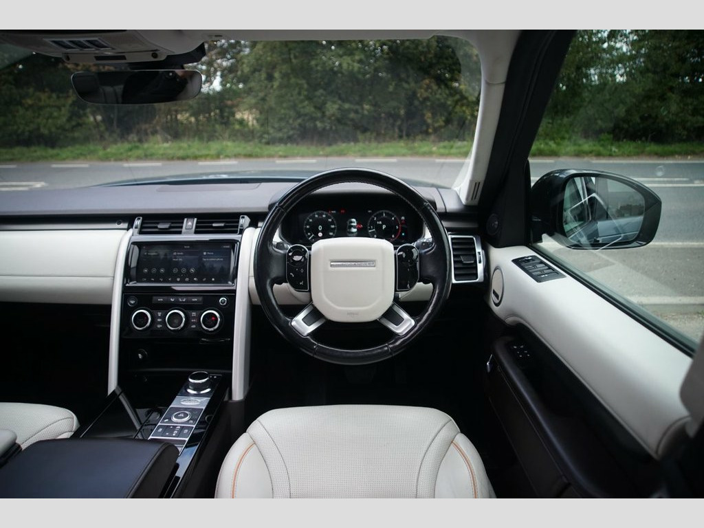 Prestige Car Supermarket in York presents this 2018 LAND ROVER DISCOVERY 3.0 SD V6 HSE Luxury SUV, a five-door diesel automatic with four-wheel drive. This spacious vehicle is finished in Byron Blue and rides on impressive 22-inch 5-split spoke alloy wheels with a gloss black finish. The interior is a luxurious space with perforated Windsor leather in a Light Oyster-Espresso colour scheme, complemented by a Fixed Front and Rear Panoramic Roof and privacy glass. The car is exceptionally well-equipped with 16-way electric memory front seats that are both heated and cooled, along with heated rear seats and a heated steering wheel. Key technology includes an Interactive Driver Display, Meridian Surround Sound System, Navigation Pro, and Rear Seat Entertainment System. Practicality is a highlight with an Intelligent Seat Fold system, Powered Gesture Tailgate, and Powered Third Row Seats. Driver assistance features include Adaptive Cruise Control, Blind Spot Assist, and a 360-degree Parking Aid. Fixed Front and Rear Panoramic Roof, Privacy Glass, 22in Alloy Wheels - 5 Split Spoke Style , Perforated Windsor Leather - Light Oyste, Byron Blue, 16-Way Electric Memory Front Seats, 2x Third Row Seats, 21in Alloy Wheels - 9 Spoke Style 9002, 2x USB Charging Points in Second Row, 21in Full Size Spare Wheel, 360 Degree Parking Aid, ABS - Anti Lock Braking System, AHBA - Auto High Beam Assist, Adaptive Cruise Control with Stop and Go, Airbags - Curtain, Airbags - Driver, Airbags - Front Passenger, Airbags - Front Side, Auto Dimming Rear View Mirror, Auto-Dimming Power Fold Heated Door Mirr, Automatic Headlights, Autonomous Emergency Braking, Blind Spot Assist, Body Coloured Door Handles, Body