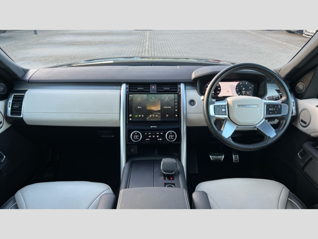Land Rover Discovery 3.0 D300 Dynamic HSE 5dr Auto 11.4" touchscreen, 3D surround camera, Adaptive cruise control, Android Auto, Apple car play, Blind spot assist, Driver condition monitor, Electric power assisted steering (EPAS), Emergency services call system, Front and rear parking aid, Interactive driver display, Lane keep assist, Power inner tailgate, Power tailgate/boot lid, Push button start, Rear collision monitor, Rear traffic monitor, Remote, Remote boot release, Service interval indicator, Speed proportional steering, Sportshift selector, Stop/start system, Traffic sign recognition with adaptive speed limiter, Trip computer, Wade Sensing, Adaptive dynamics, Dynamic stability control, Electronic air suspension, Front axle open differential, Digital Audio Broadcast radio-DAB, Dynamic volume control, Pivi pro connected, USB/aux input socket, Acoustic laminated windscreen, Animated directional indicators, Auto dimming interior rear view mirror, Automatic headlight levelling, Automatic headlights, Body colour bumpers, Body colour door handles, Centre high mounted stop light, D300 badge, Electric heated/power fold memory door mirrors with approach lights and auto dimming driver side, Electric windows with one touch open/close and anti-trap, Heated rear window, Heated windscreen, LED darkend tail lights, Matrix LED headlights with signature DRL, Narvik black Discovery script, Privacy glass, Puddle lights, Rain sensing windscreen wipers, Rear fog lights, Rear side wing doors, Rear wash/wipe, Trailer stability assist, Variable intermittent wiper, 12V power sockets, 12V USB charging socket in loadspace, 2 seat bench in 3rd row, 3 seat bench in 2nd row, 60/40 electric heated folding rear seats with manual slide and powered recline, centre headrest and armrest, Central hinged twin lidded storage, Configurable cabin lighting, Ebony morzine headlining, Electric adjustable steering column, First and second row door bins, Footwell lights, Front and rear 12V with front USB, Front passenger seat isofix location point, In-facia storage, Isofix child seat preparation for front passenger seat, Leather steering wheel, Loadspace cover, Loadspace Hook, Loadspace light, Lockable glovebox, Lower centre console storage, Luggage tie downs in loadspace, Multi function steering wheel, Overhead lighting console, Premium carpet mats, Rear ISOFIX, Shopping bag hook, Single front passenger seat, Storage glovebox, Sunvisors with illuminated vanity mirrors, Third row storage, Treadplates with metal inserts, Twin front cupholders with cover, USB with 12V socket in centre console, Black exterior pack - Discovery Dynamic SE/HSE, Online pack with data plan - Discovery, 3x3 point rear seatbelts, Anti-lock braking system (ABS), Brake pre-fill technology, Cornering brake control, Curtain airbags, Customer configurable autolock, Driver and passenger airbags, EBD - Electronic brakeforce distribution, Electronic traction control, Emergency brake assist, Emergency braking, ESP, Front side airbags, Gradient acceleration control, Hill descent control, Hill launch assist, Power operated child locks, Rear airbags, Roll stability control, Seat belt reminder, Torque vectoring brake, Tyre pressure monitoring system, Immobiliser, Intrusion sensor, Keyless entry, Locking wheel nuts, Remote central locking, All terrain tyres