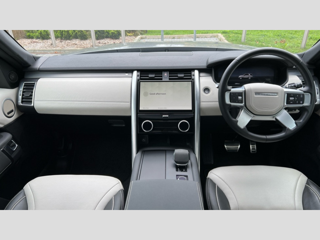 Land Rover Discovery 3.0 D300 Dynamic HSE 5dr Auto 11.4" touchscreen, 3D surround camera, Adaptive cruise control, Android Auto, Apple car play, Blind spot assist, Driver condition monitor, Electric power assisted steering (EPAS), Emergency services call system, Front and rear parking aid, Interactive driver display, Lane keep assist, Power inner tailgate, Power tailgate/boot lid, Push button start, Rear collision monitor, Rear traffic monitor, Remote, Remote boot release, Service interval indicator, Speed proportional steering, Sportshift selector, Stop/start system, Traffic sign recognition with adaptive speed limiter, Trip computer, Wade Sensing, Adaptive dynamics, Dynamic stability control, Electronic air suspension, Front axle open differential, Digital Audio Broadcast radio-DAB, Dynamic volume control, Pivi pro connected, USB/aux input socket, Acoustic laminated windscreen, Animated directional indicators, Auto dimming interior rear view mirror, Automatic headlight levelling, Automatic headlights, Body colour bumpers, Body colour door handles, Centre high mounted stop light, D300 badge, Electric heated/power fold memory door mirrors with approach lights and auto dimming driver side, Electric windows with one touch open/close and anti-trap, Heated rear window, Heated windscreen, LED darkend tail lights, Matrix LED headlights with signature DRL, Narvik black Discovery script, Privacy glass, Puddle lights, Rain sensing windscreen wipers, Rear fog lights, Rear side wing doors, Rear wash/wipe, Trailer stability assist, Variable intermittent wiper, 12V power sockets, 12V USB charging socket in loadspace, 2 seat bench in 3rd row, 3 seat bench in 2nd row, 60/40 electric heated folding rear seats with manual slide and powered recline, centre headrest and armrest, Central hinged twin lidded storage, Configurable cabin lighting, Ebony morzine headlining, Electric adjustable steering column, First and second row door bins, Footwell lights, Front and rear 12V with front USB, Front passenger seat isofix location point, In-facia storage, Isofix child seat preparation for front passenger seat, Leather steering wheel, Loadspace cover, Loadspace Hook, Loadspace light, Lockable glovebox, Lower centre console storage, Luggage tie downs in loadspace, Multi function steering wheel, Overhead lighting console, Premium carpet mats, Rear ISOFIX, Shopping bag hook, Single front passenger seat, Storage glovebox, Sunvisors with illuminated vanity mirrors, Third row storage, Treadplates with metal inserts, Twin front cupholders with cover, USB with 12V socket in centre console, Black exterior pack - Discovery Dynamic SE/HSE, Online pack with data plan - Discovery, 3x3 point rear seatbelts, Anti-lock braking system (ABS), Brake pre-fill technology, Cornering brake control, Curtain airbags, Customer configurable autolock, Driver and passenger airbags, EBD - Electronic brakeforce distribution, Electronic traction control, Emergency brake assist, Emergency braking, ESP, Front side airbags, Gradient acceleration control, Hill descent control, Hill launch assist, Power operated child locks, Rear airbags, Roll stability control, Seat belt reminder, Torque vectoring brake, Tyre pressure monitoring system, Immobiliser, Intrusion sensor, Keyless entry, Locking wheel nuts, Remote central locking, All terrain tyres