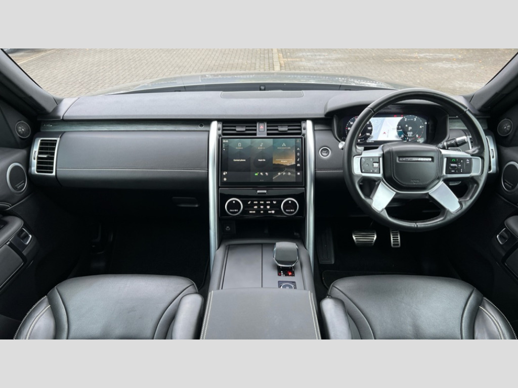 Land Rover Discovery 3.0 D300 R-Dynamic HSE 5dr Auto 11.4" touchscreen, 3D surround camera, Adaptive cruise control, Android Auto, Apple car play, Blind spot assist, Clear exit monitor, Driver condition monitor, Electric power assisted steering (EPAS), Front and rear parking aid, Lane keep assist, Power inner tailgate, Push button start, Rear collision monitor, Rear traffic monitor, Remote, Remote boot release, Service interval indicator, Speed proportional steering, Sportshift selector, Stop/start system, Traffic sign recognition with adaptive speed limiter, Trip computer, Wade Sensing, Adaptive dynamics, Dynamic stability control, Electronic air suspension, Front axle open differential, Digital Audio Broadcast radio-DAB, Dynamic volume control, Meridian surround sound system - 14 speaker + subwoofer, 18 channel amplifier, 700W, Pivi pro connected, USB/aux input socket, Acoustic laminated windscreen, Animated directional indicators, Auto dimming interior rear view mirror, Automatic headlight levelling, Automatic headlights, Body colour bumpers, Body colour door handles, Centre high mounted stop light, D300 badge, Electric heated/power fold door mirrors with approach lights and auto dimming driver side, Electric windows with one touch open/close and anti-trap, Heated rear window, Heated windscreen, LED desaturated signature tail lights, Matrix LED headlights with signature DRL, Metal treadplates with R-Dynamic branding, Narvik black Discovery script, Puddle lights, Rain sensing windscreen wipers, Rear fog lights, Rear wash/wipe, Trailer stability assist, Variable intermittent wiper, 12V power sockets, 12V USB charging socket in loadspace, Central hinged twin lidded storage, Ebony morzine headlining, Electric adjustable steering column, First and second row door bins, Footwell lights, Front and rear 12V with front USB, Front passenger seat isofix location point, In-facia storage, Isofix child seat preparation for front passenger seat, Loadspace cover, Loadspace Hook, Loadspace light, Lockable glovebox, Lower centre console storage, Luggage tie downs in loadspace, Multi function steering wheel, Overhead lighting console, Premium cabin lighting, Premium carpet mats, Shopping bag hook, Storage glovebox, Sunvisors with illuminated vanity mirrors, Third row storage, Twin front cupholders with cover, USB with 12V socket in centre console, Online pack with data plan - Discovery, R-Dynamic black exterior pack - Discovery, 3x3 point rear seatbelts, Anti-lock braking system (ABS), Brake pre-fill technology, Cornering brake control, Curtain airbags, Customer configurable autolock, Driver and passenger airbags, EBD - Electronic brakeforce distribution, Electronic traction control, Emergency brake assist, Emergency braking, ESP, Front side airbags, Gradient acceleration control, Hill descent control, Hill launch assist, Power operated child locks, Rear airbags, Roll stability control, Seat belt reminder, Torque vectoring brake, Tyre pressure monitoring system, Immobiliser, Intrusion sensor, Keyless entry, Locking wheel nuts, Remote central locking, All terrain tyres